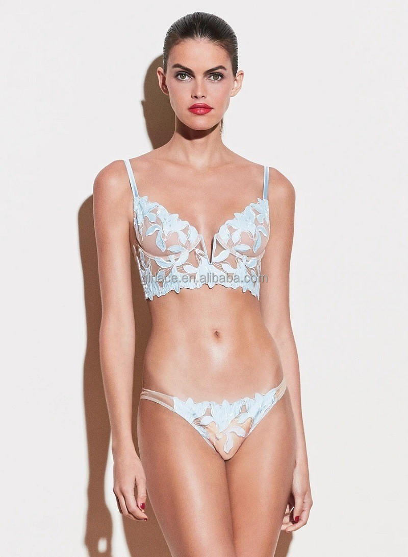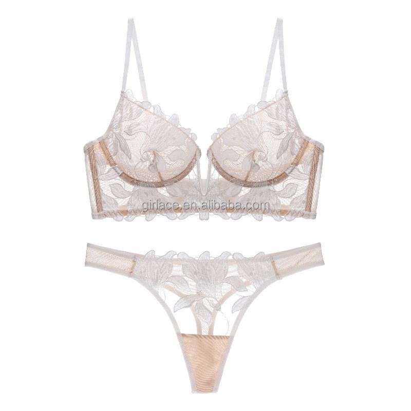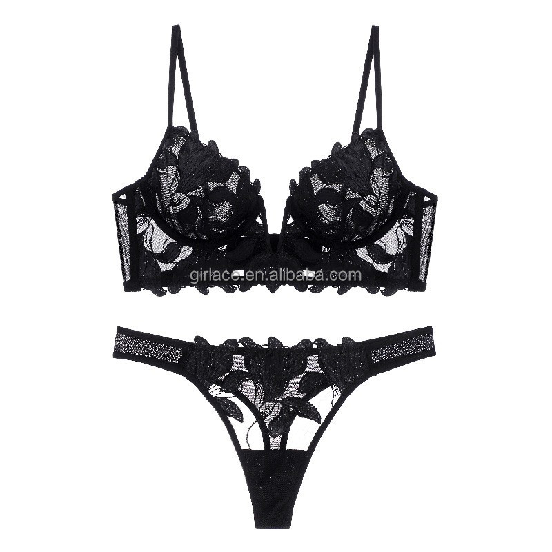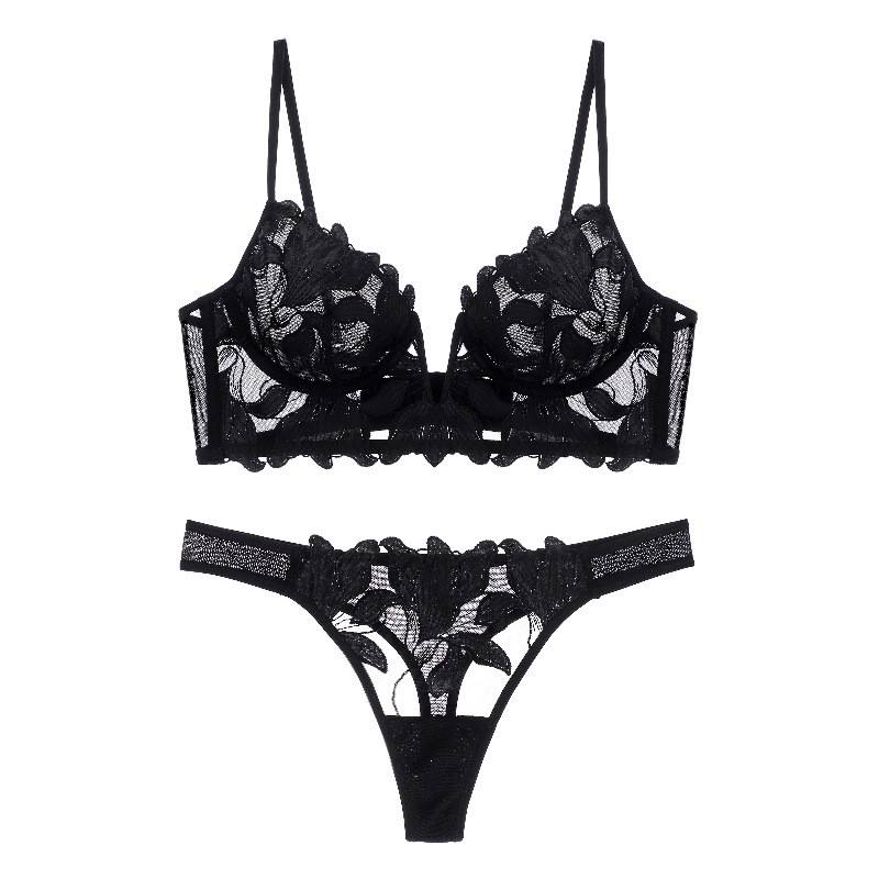 Lady Sexy Elegant Underwear V Shape Wire Bra and Thongs Nightwear Teddy Underwear Set