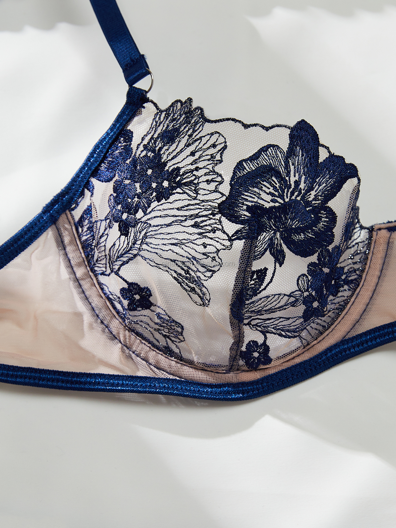 Lady Sexy Floral Embroidered Babydoll 2 Piece Underwire Bra and Panty Floral Cup Sleeping Nightwear Underwear Set