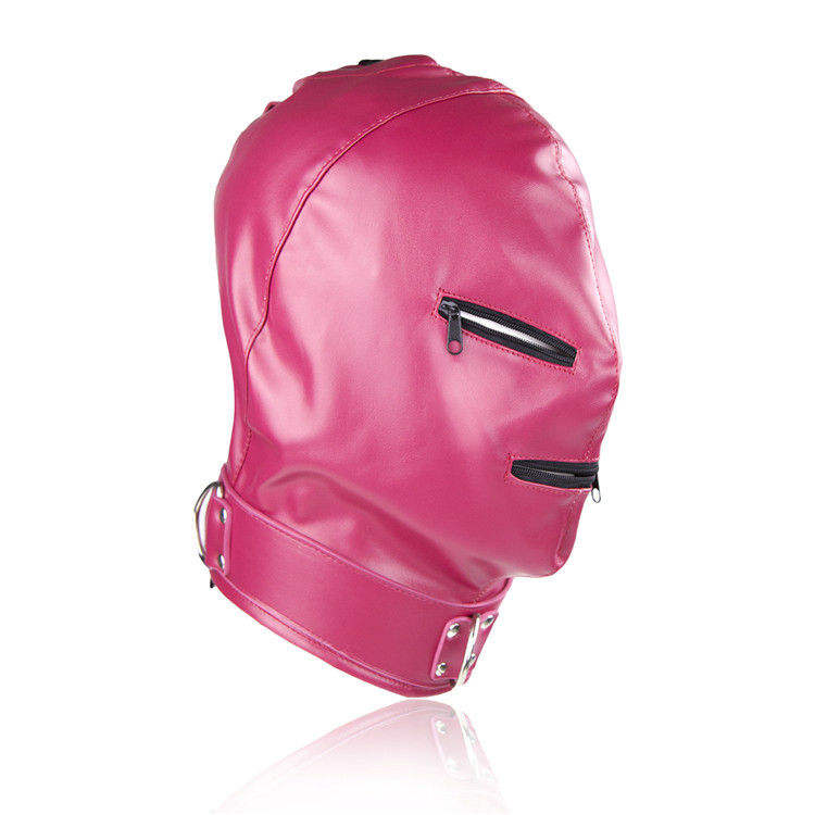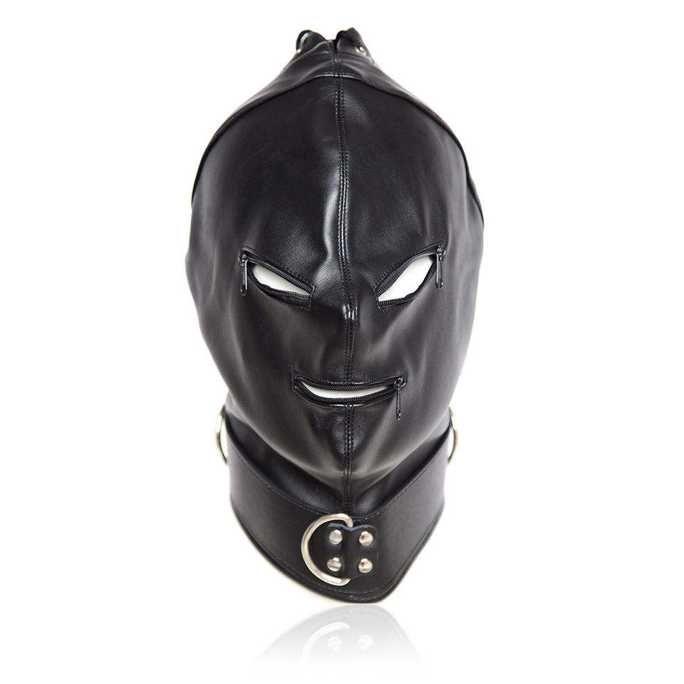 Latex Bondage Black Full Face Restraint Head Hood BDSM Headgear With Zipper for Adults Couples Bondage Mask