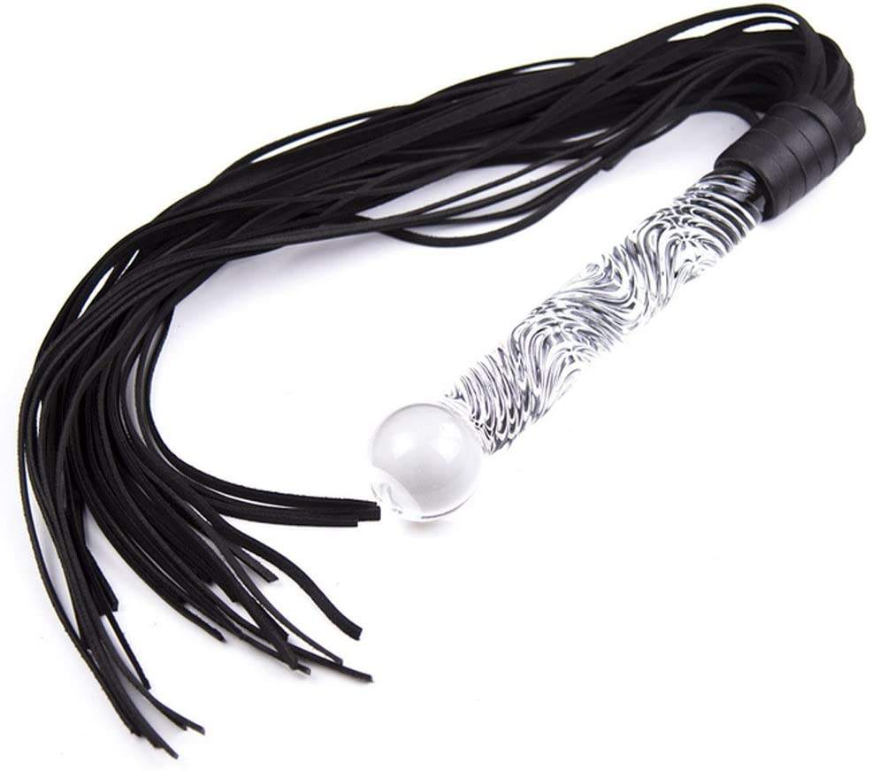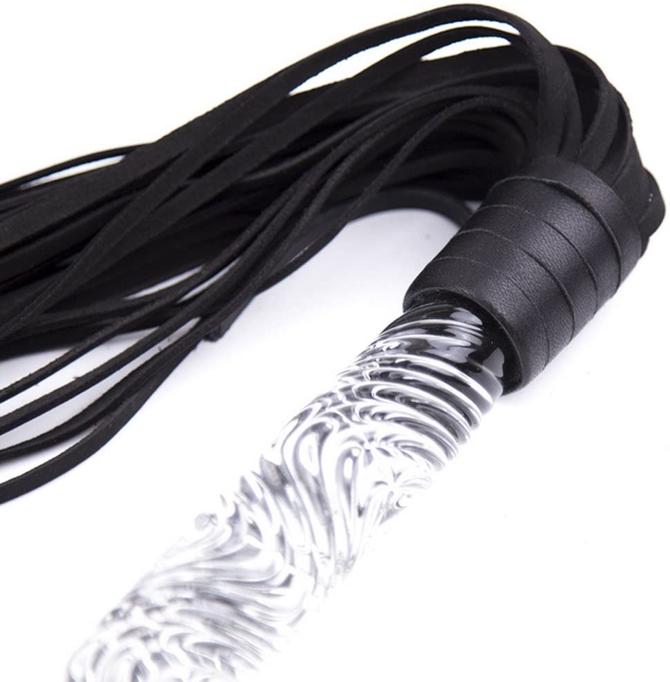 Leather Whip With Glass Pleasure Wand With Ball Tip – Sex Toy for SM or Anal Other SM Products