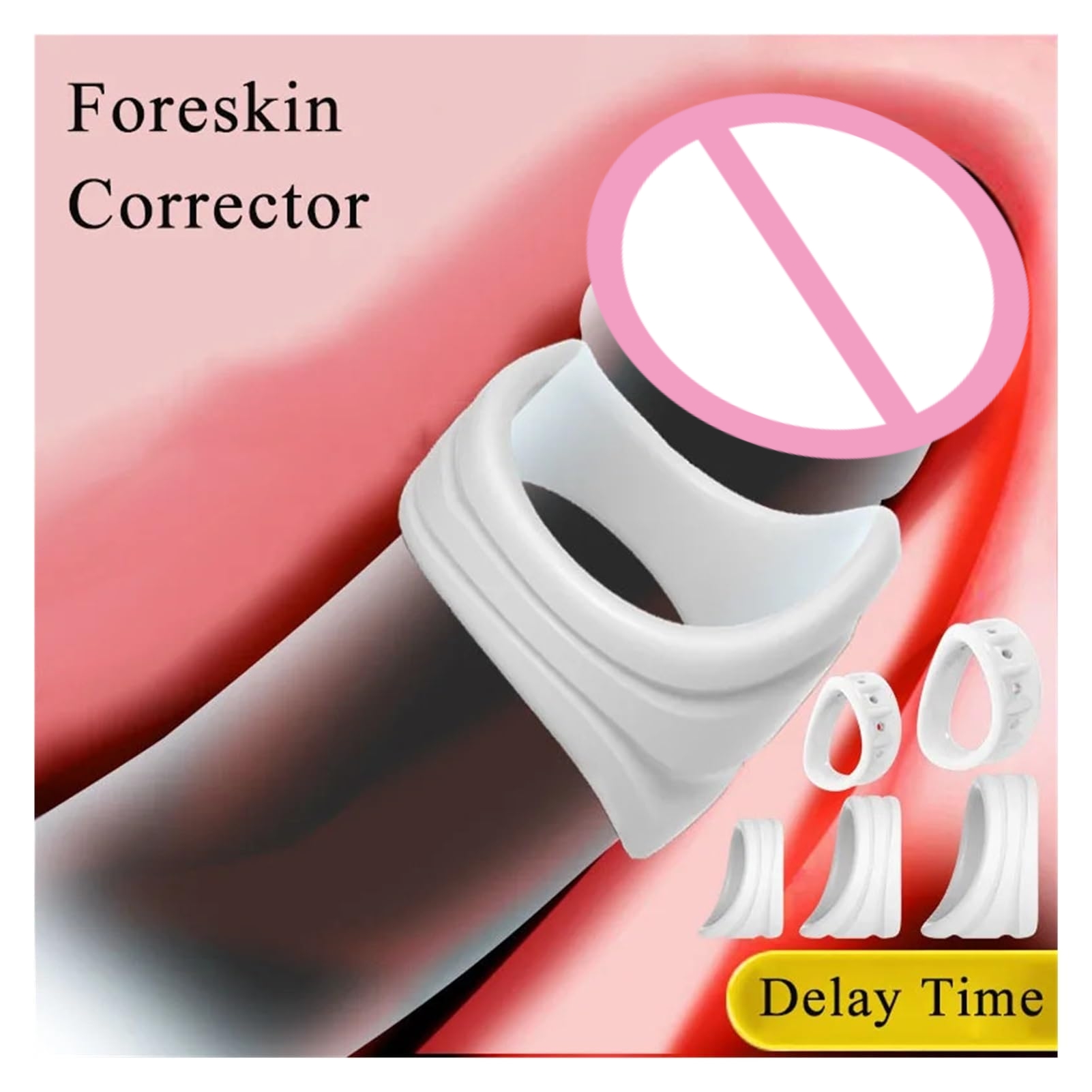 Male Circumcision Corrector Penis Ring Time Delay Longer Lasting Erection Thick Reusable Lock Cock Ring Adult Sex Toy for Mens
