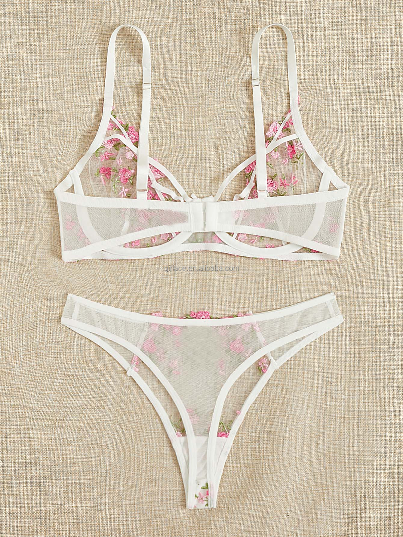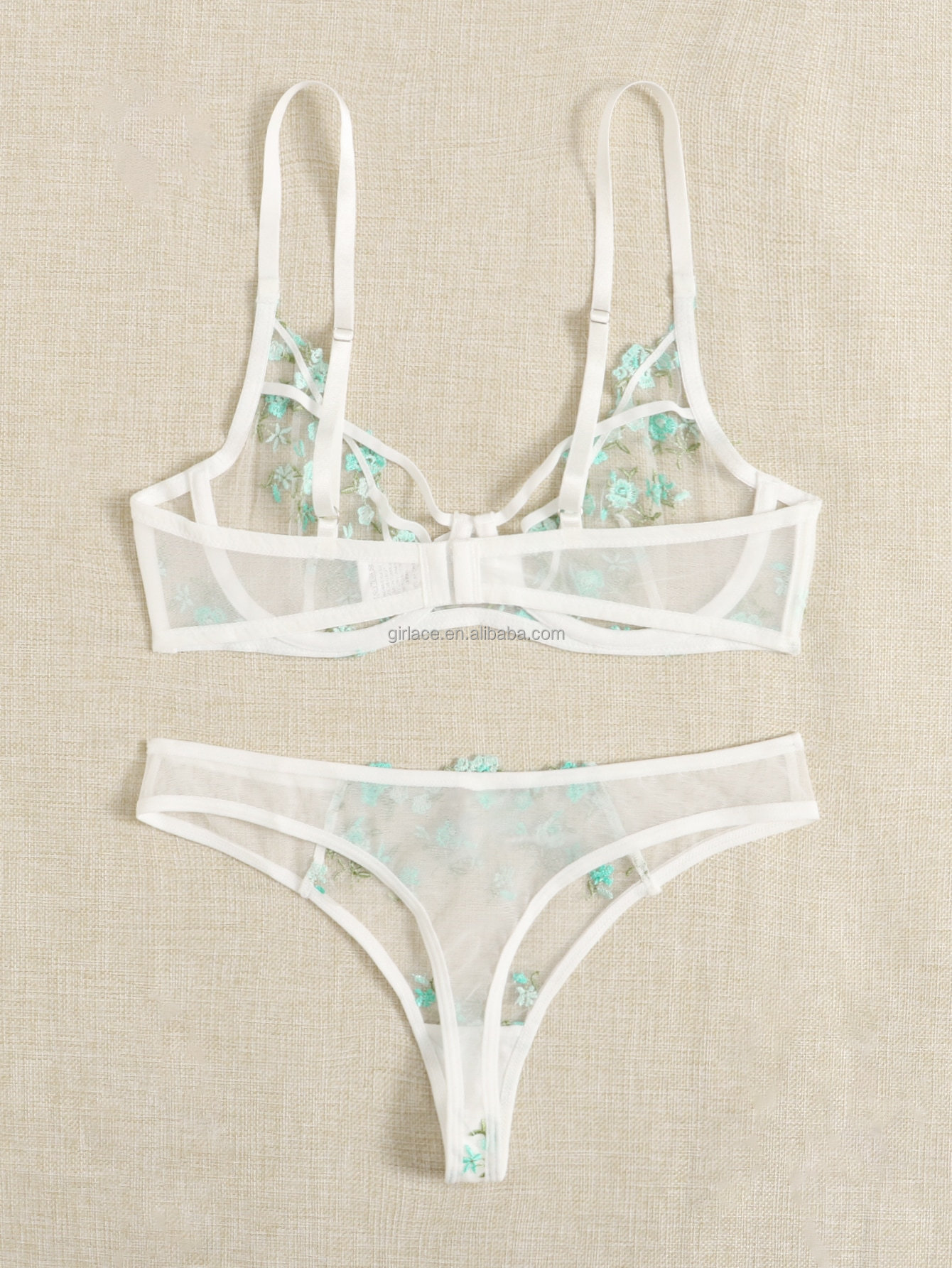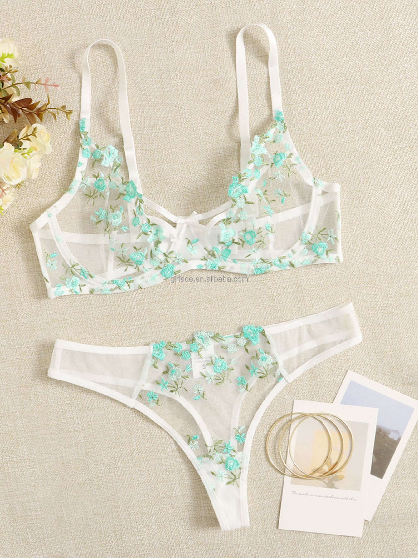 Mature Girl Sexy Night Embroidery Floral Net Bra Set Back Closure Underwear Lingerie Teenage Sleepwear Brief Bra Set