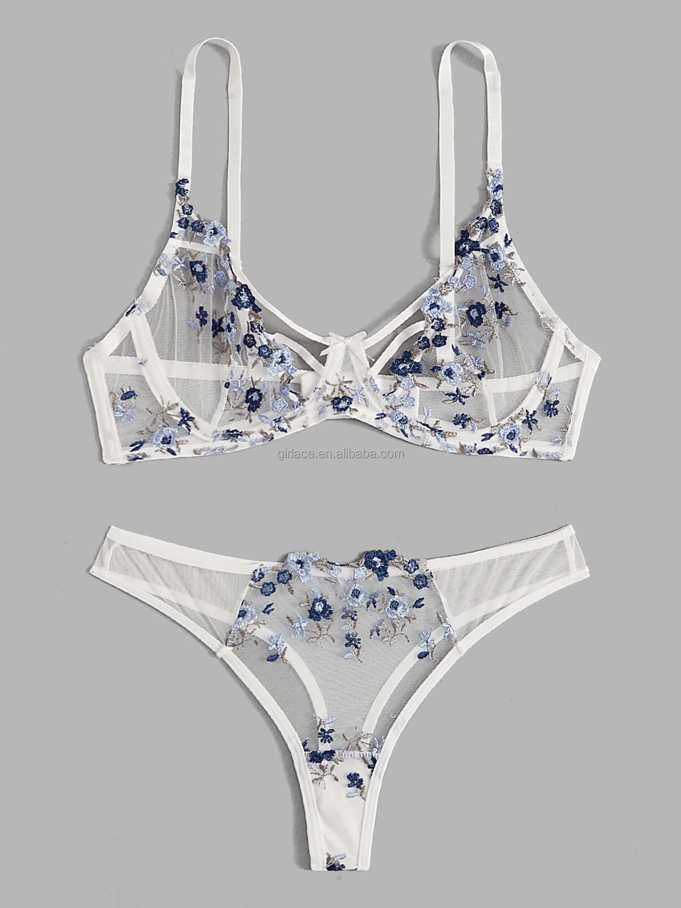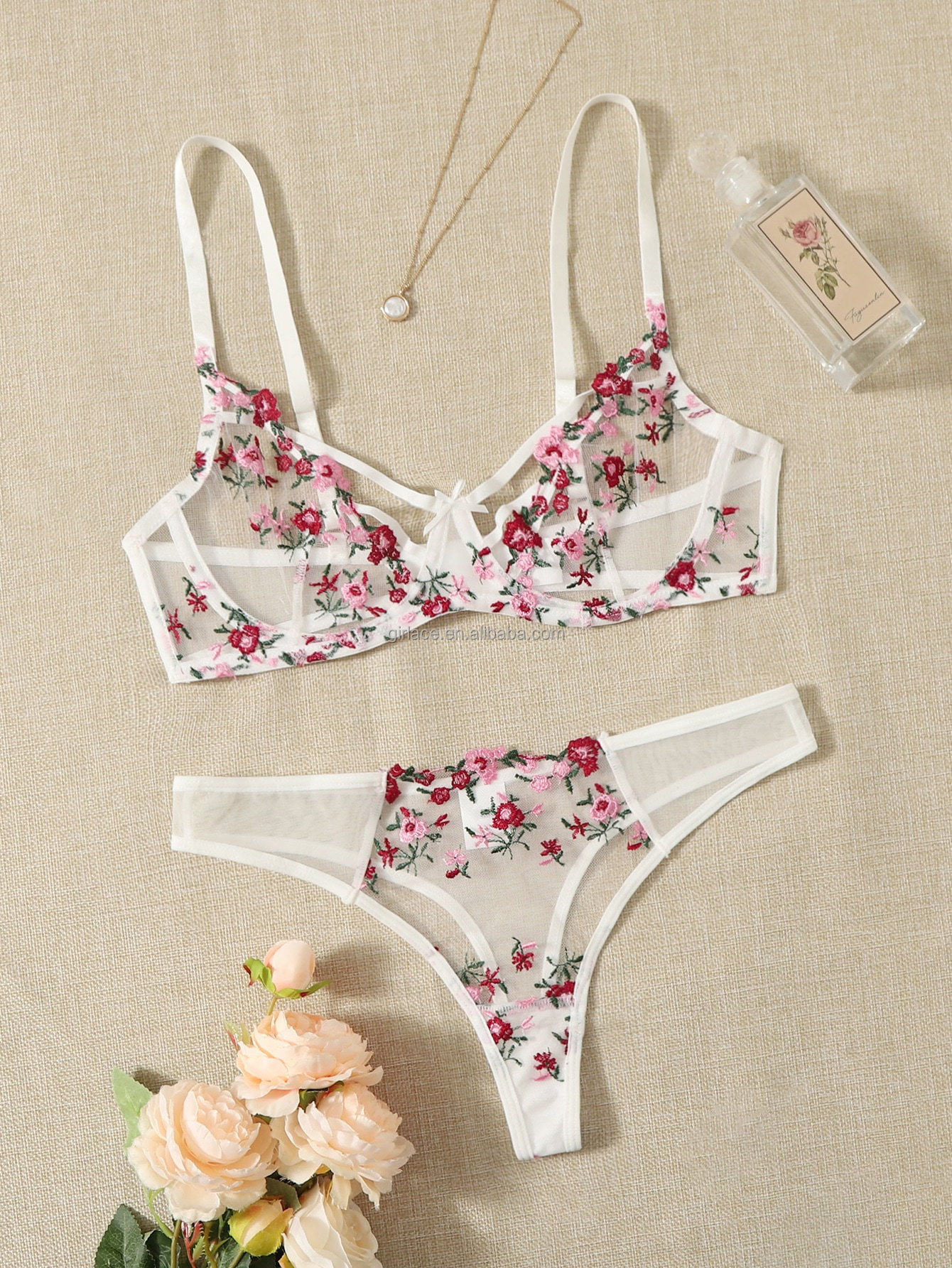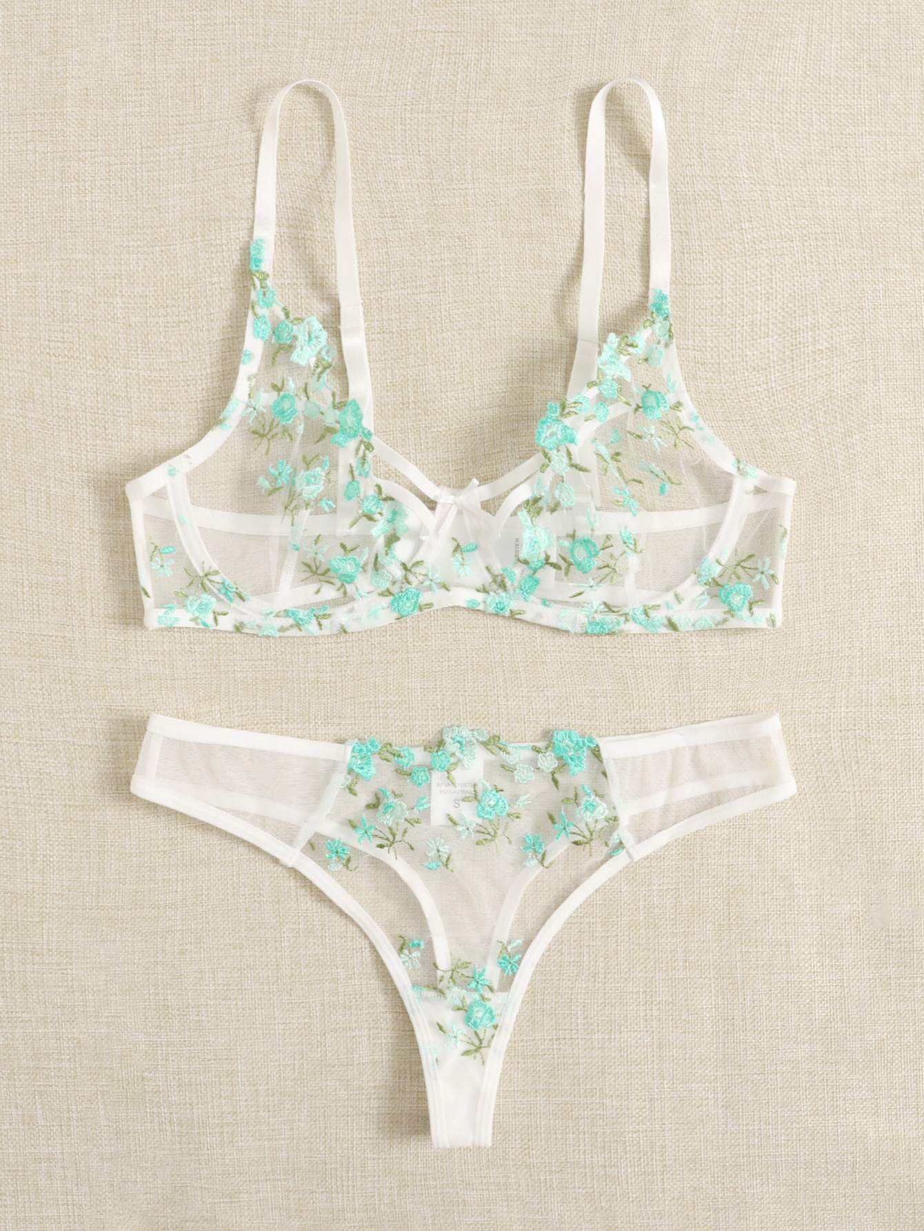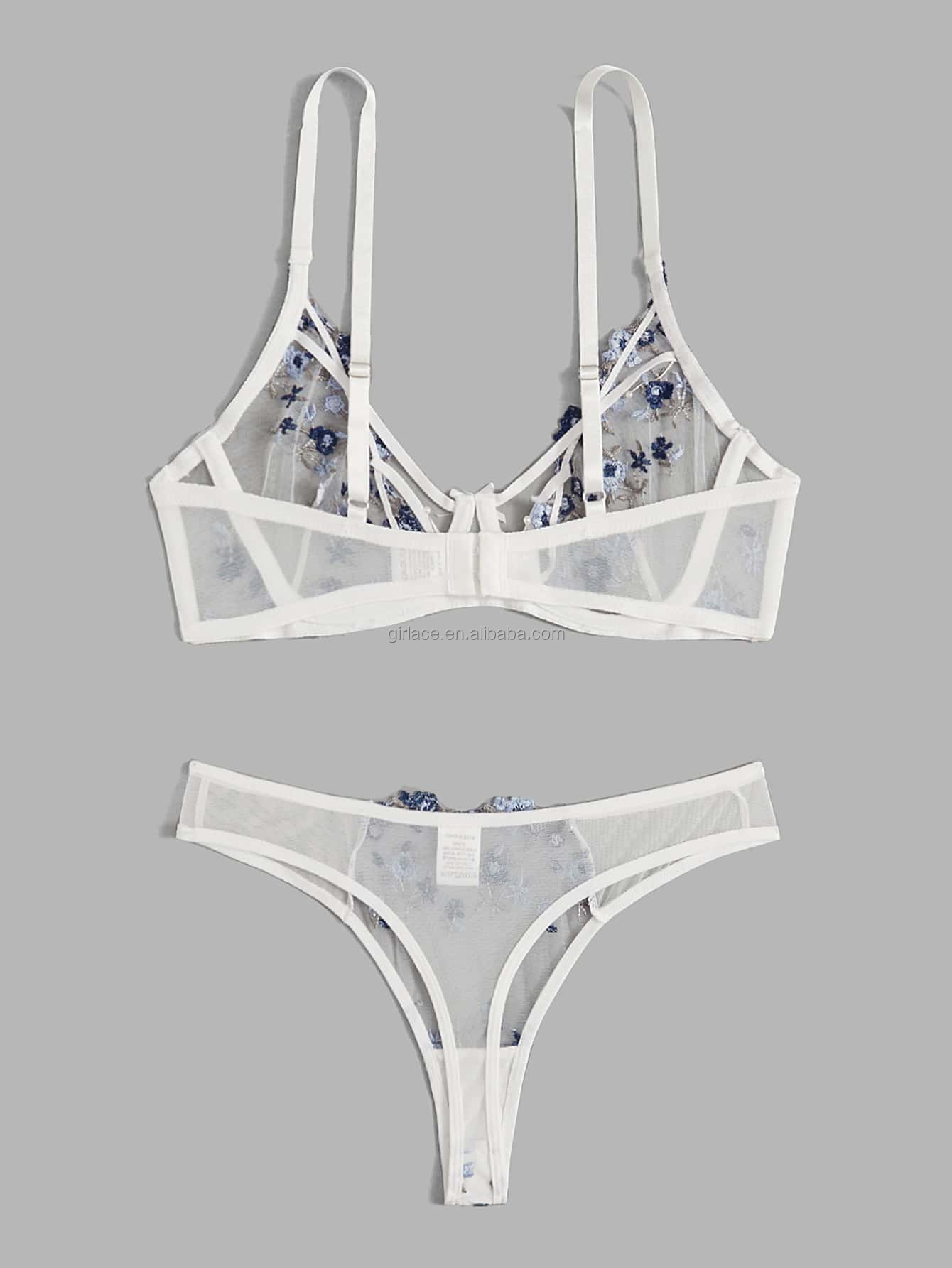 Mature Girl Sexy Night Embroidery Floral Net Bra Set Back Closure Underwear Lingerie Teenage Sleepwear Brief Bra Set