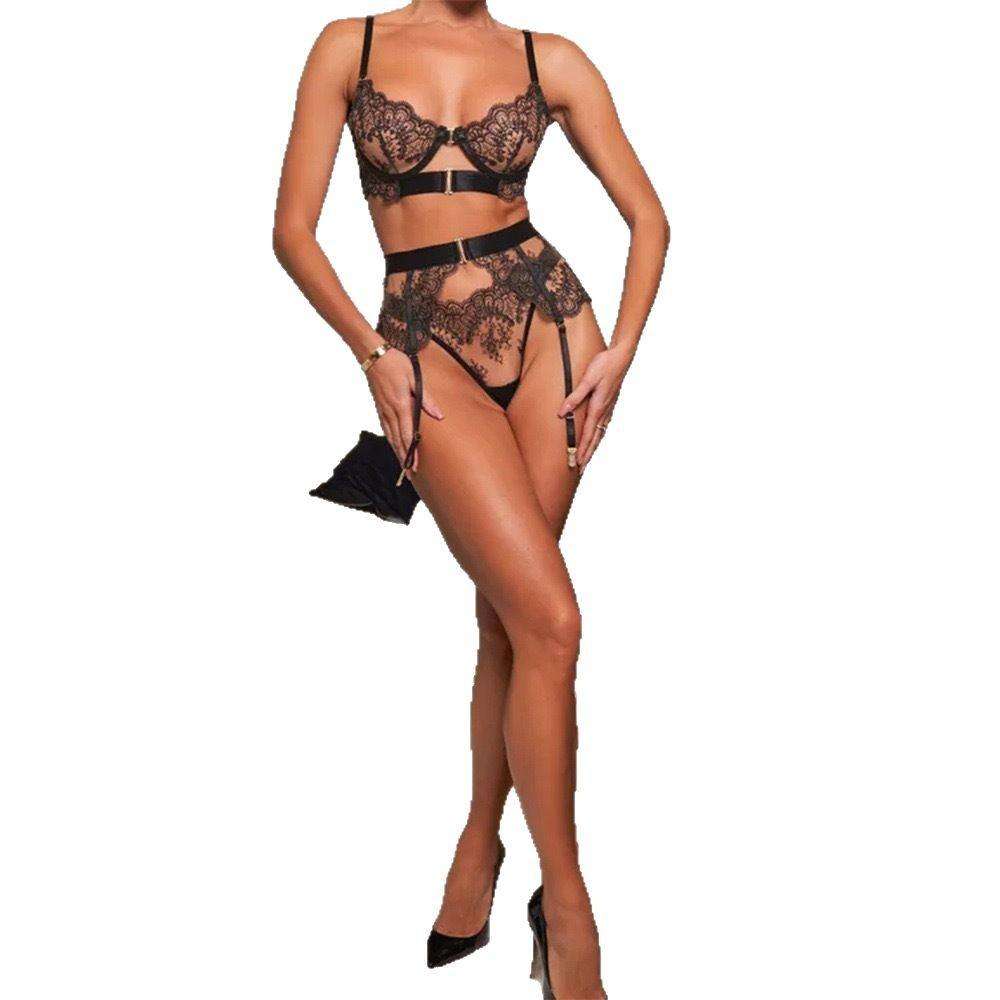 New European and American Embroidered Romantic Lingerie, Embroidered Eyelash Lace See-through Sexy Lingerie Set