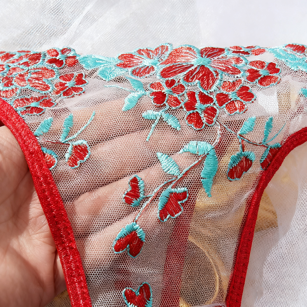 New Fashion Women’s Summer Sexy Bra Suit Ultra-Thin Underwear With Lily Flower Embroidered Bra Sheer Lace Bikini Panties Set
