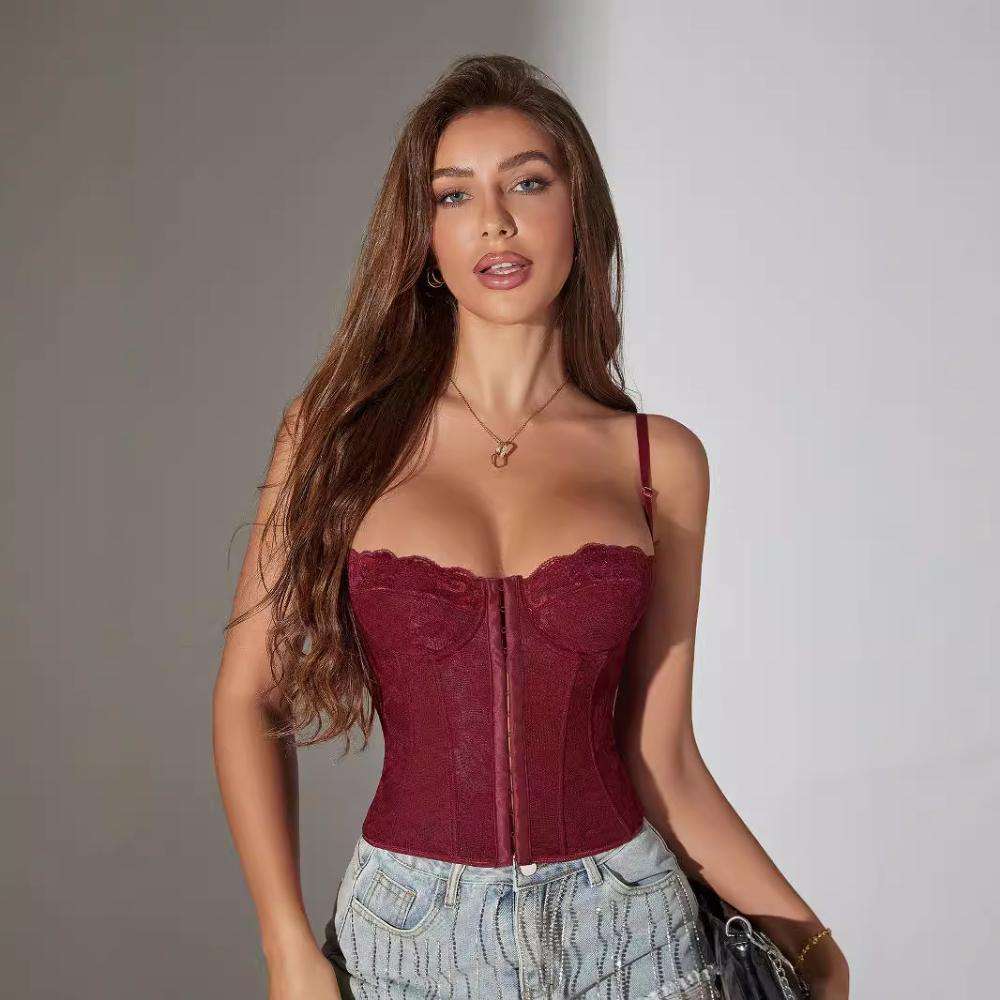 New Fishbone Sexy Halter Top for Spicy Girls, Front Row Buttoned Steel Ring Corset, Silk Lace Lace Lace Women’s Corset