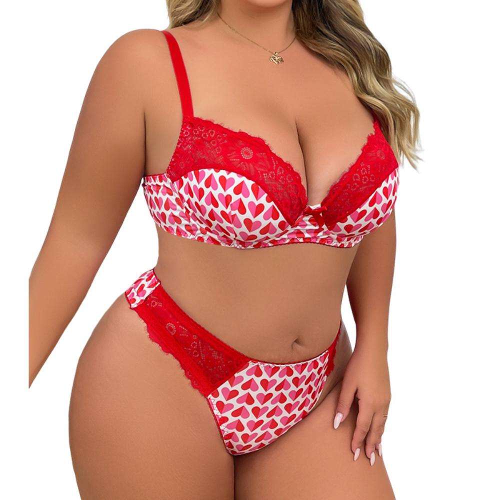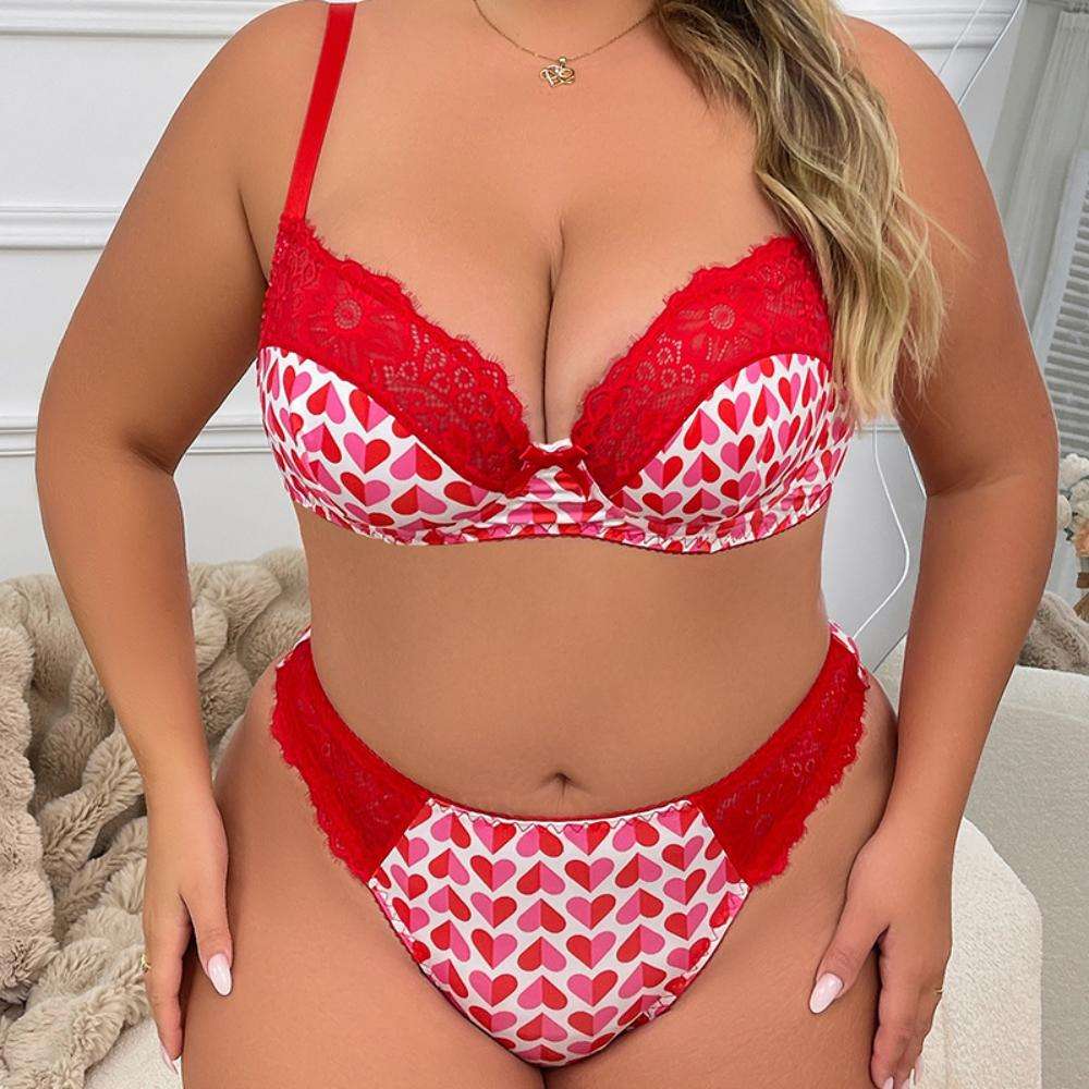 New Plus-size Pure Lingerie Set From Europe and America, Printed Lace Patchwork Lingerie, Sexy Gathering Plus-size Lingerie