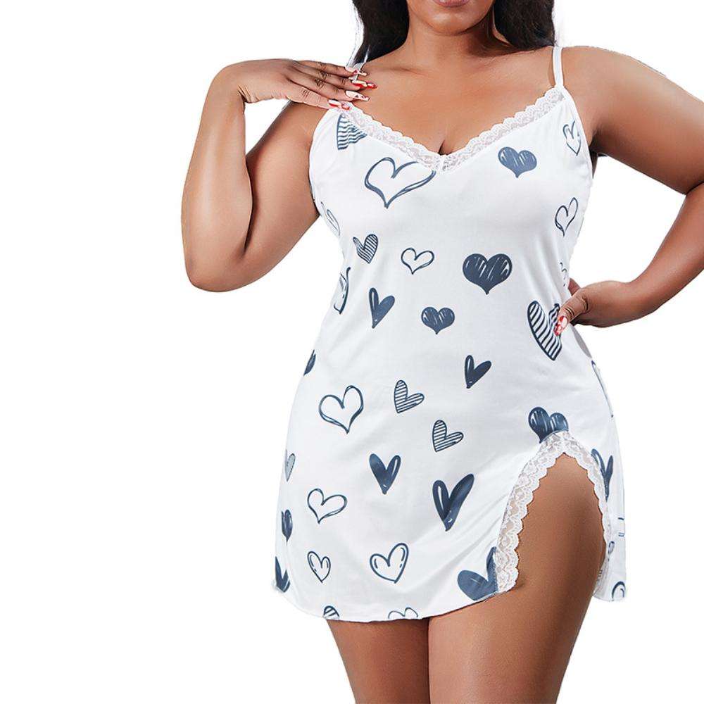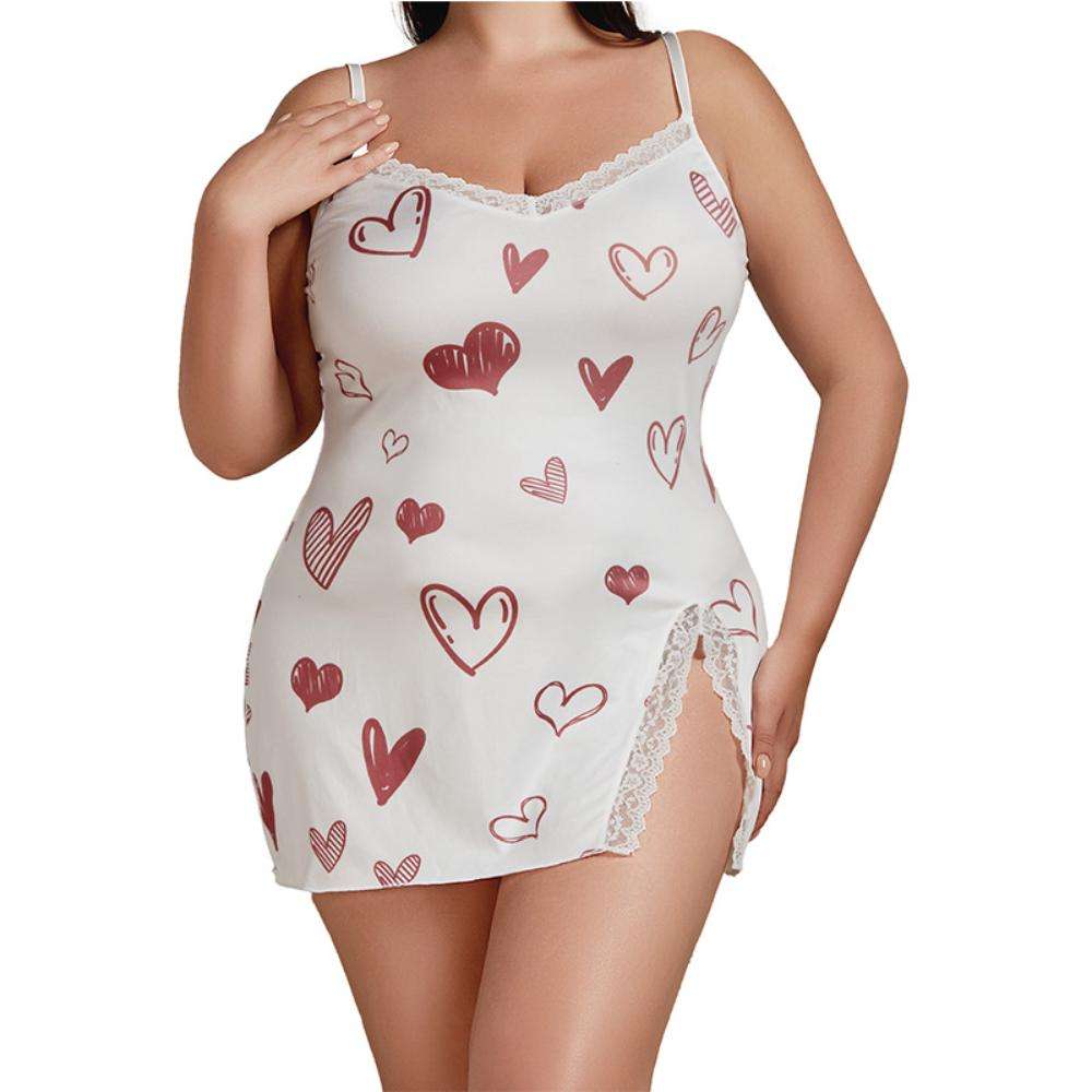 New Plus-size Romantic Pajamas From Europe and America, Sexy Lace-trimmed Dress, Nightgown, Slit in Multiple Colors