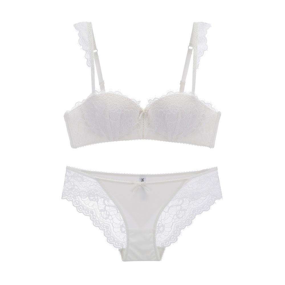 New Sexy Lace Gathering Shoulder Strap Detachable Side-retractable Small Chest Top Support Bra Sexy Lingerie Set