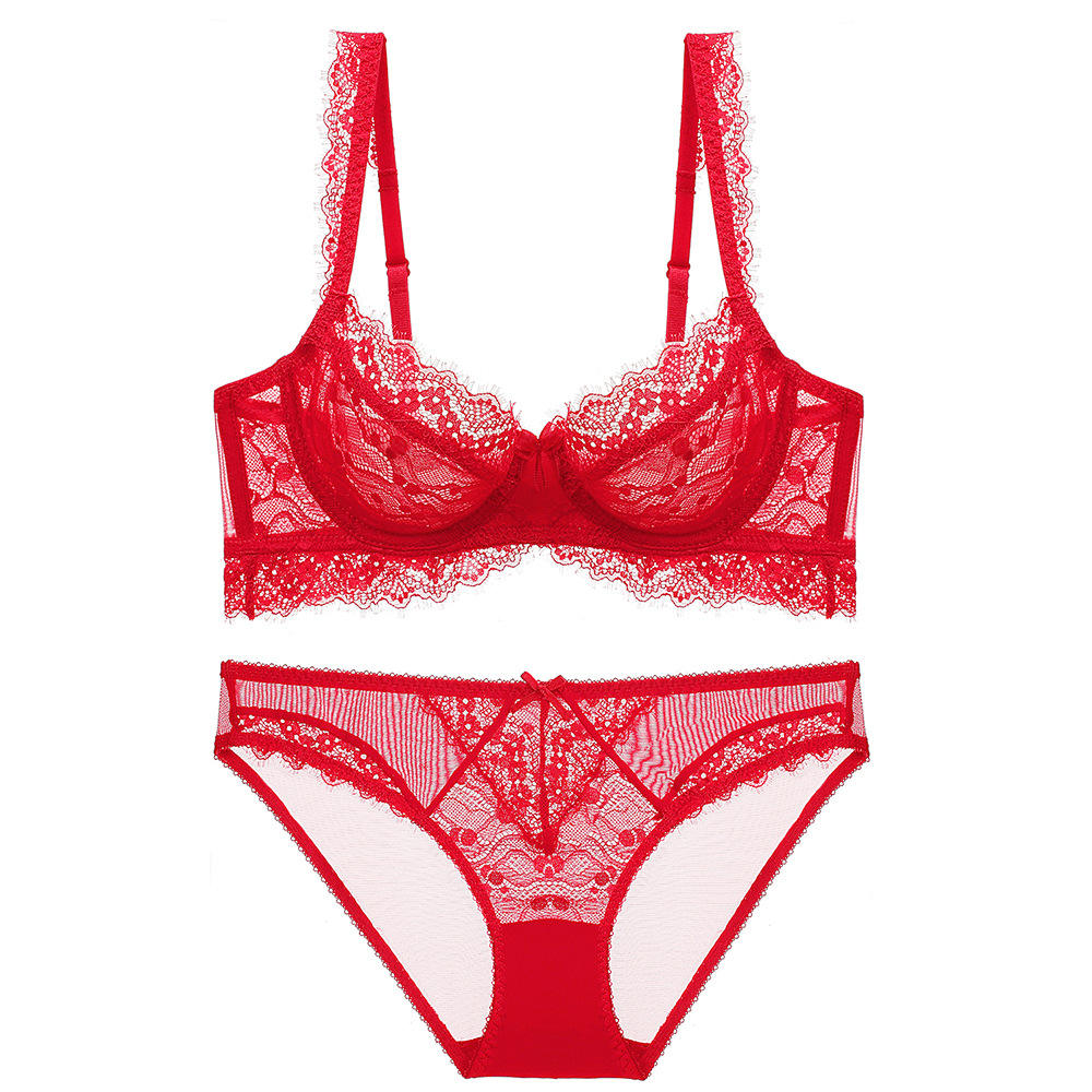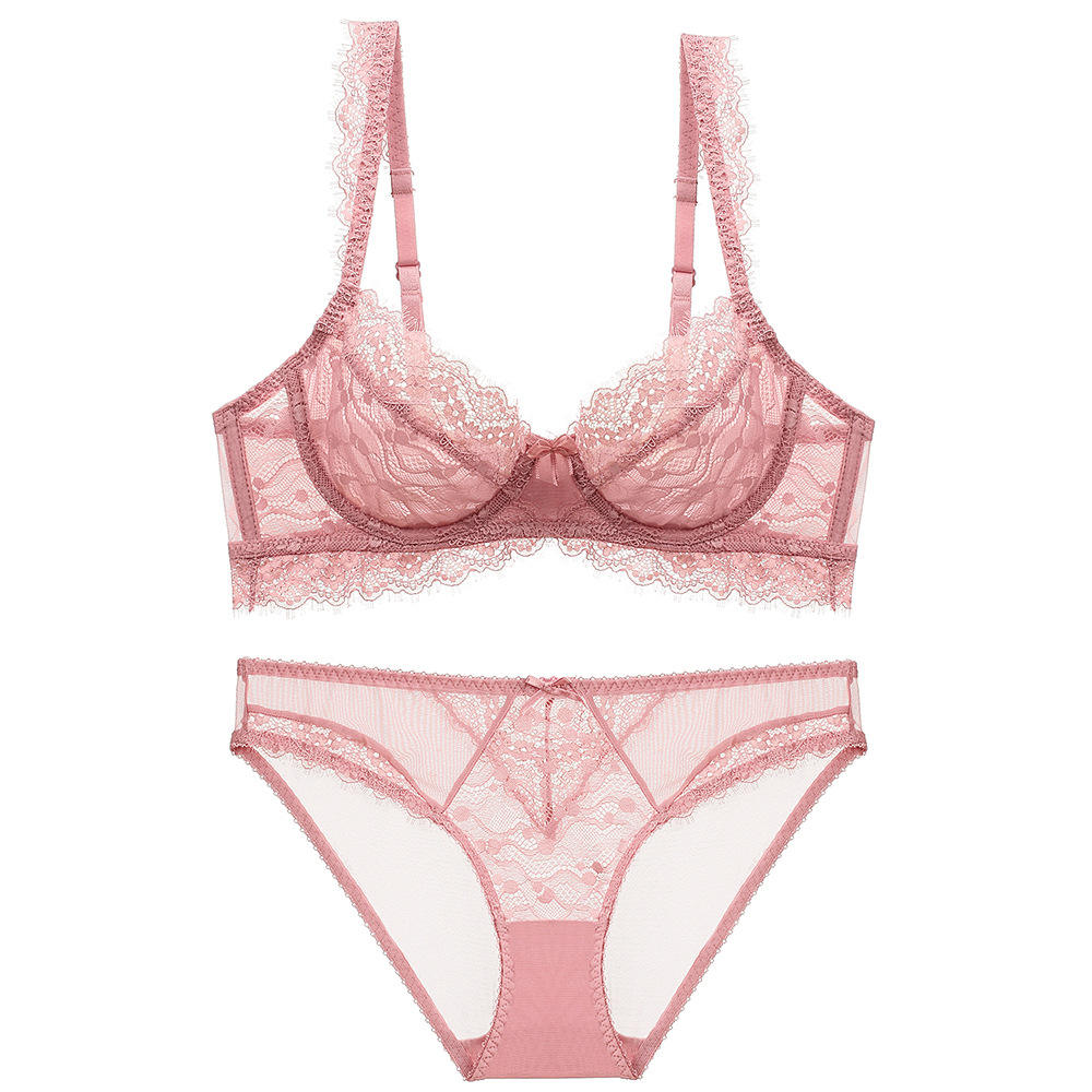 No Minimum Ultra-Thin Women’s Sexy Lingerie Set Madam French Bra with Hollow See-Through Mesh Lace Decoration Lingerie Underwear
