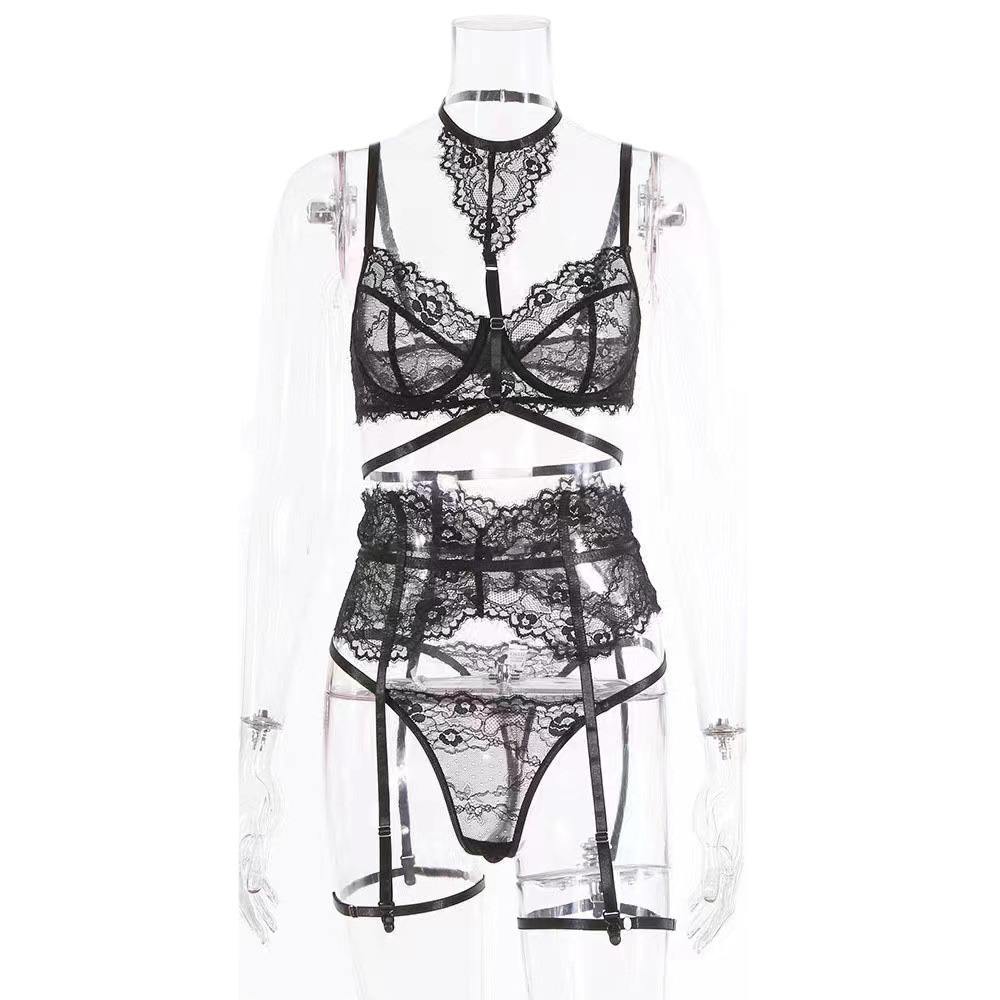 No Minimum Women Sexy Sling Lace Perspective Lingerie Set Floral Bra and Panty Sets Sexy Underwear Set Onesie Dress