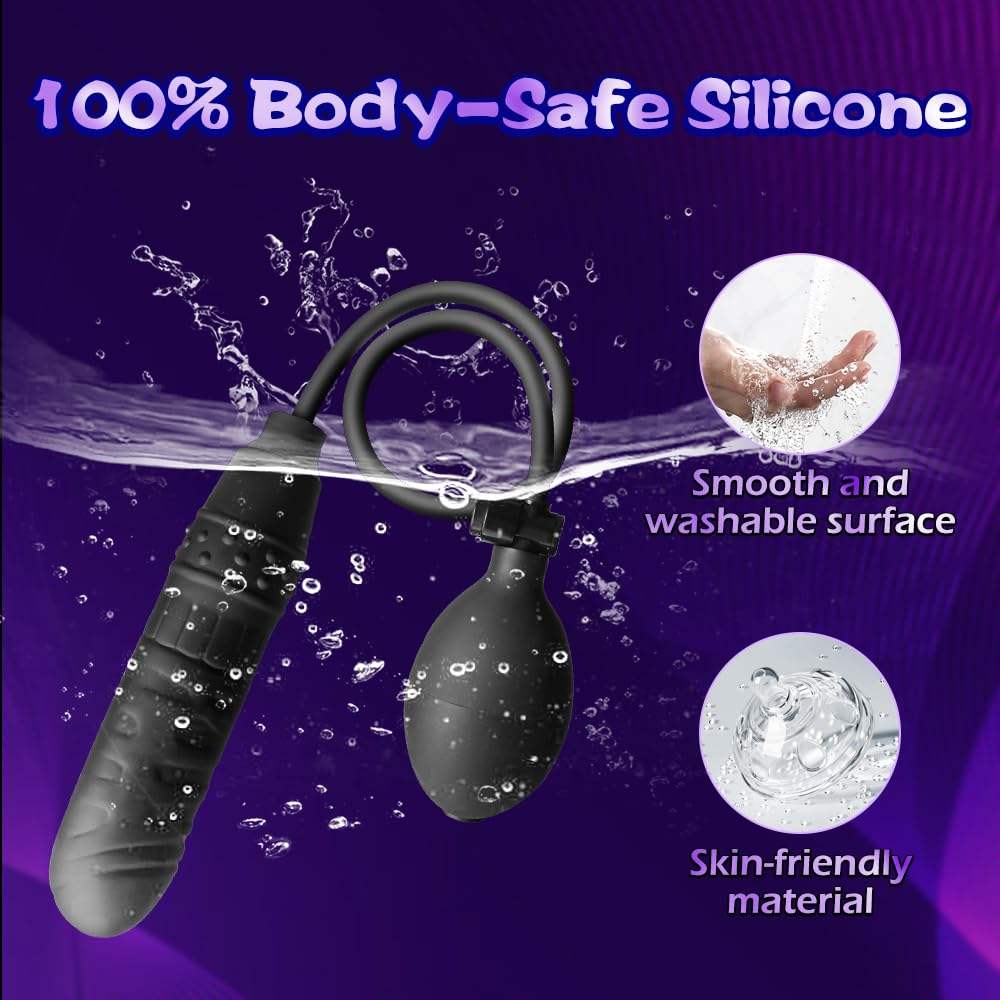OEM 2 in 1 Resizable Enema Anal Sex Toy Silicone Inflatable Realistic Dildo Anal Pulg Expand Butt Plug with Balloon Pump