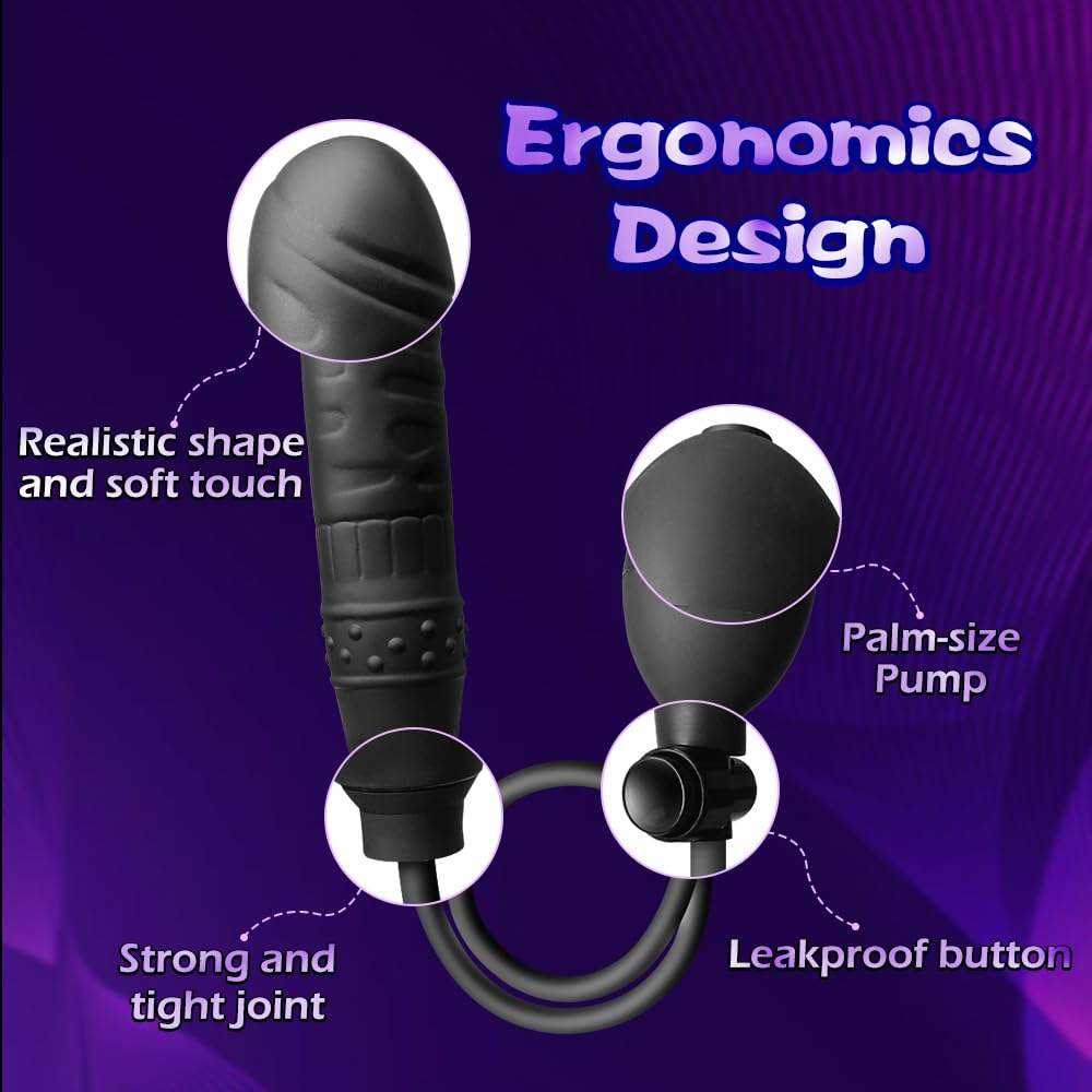 OEM 2 in 1 Resizable Enema Anal Sex Toy Silicone Inflatable Realistic Dildo Anal Pulg Expand Butt Plug with Balloon Pump