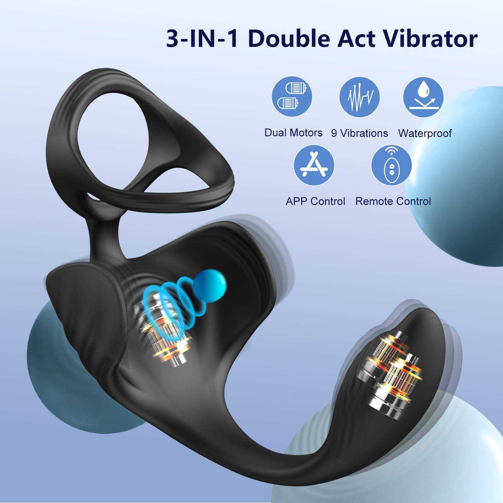 OEM 3 in 1 Penis Ring Vibration Anal Testicle Sex Toys APP Remote Control Prostate Massager Vibrating Cock Ring with Anal Plug
