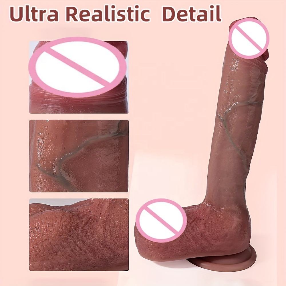 OEM Dark Brown Flesh Color Double Layer Liquid Silicone Dildo Mid-internal Inciting Realistic Dildo Sex Toy for Couple