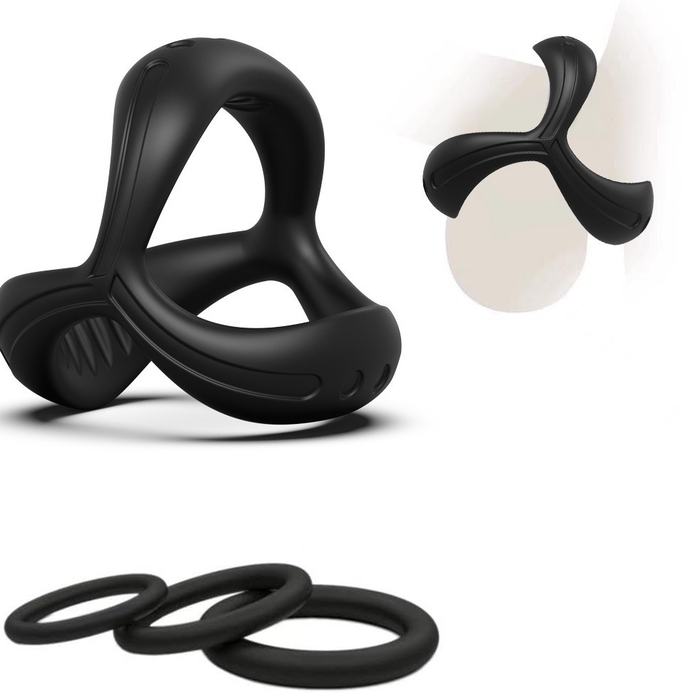 OEM Double Stretch Lock Sperm Ring Male Device Triangle Silicone JJ Double Set Ring Sun Circle Couple Sex Toys