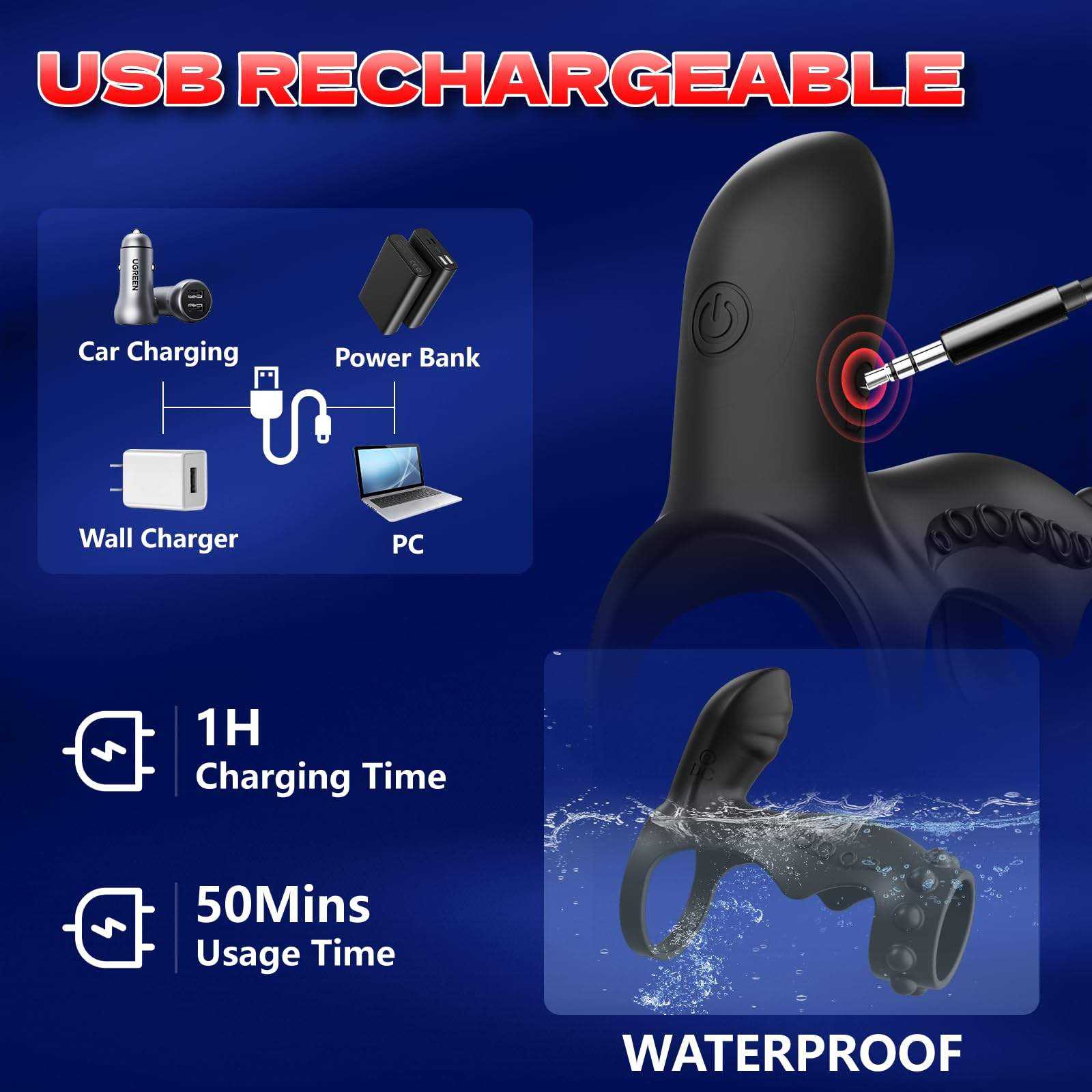 OEM Dual Ring Adult Sex Toys Stimulator Massager Vibrating Penis Ring Cock Sleeve for Men Erection Enhancing and Female Pleasure