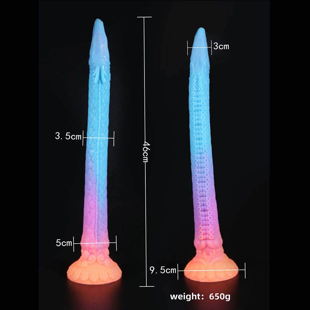 OEM Glow-in-the-Dark Luminous Silicone Creature Cock Anal Plug Tentacle 46cm Super Long Snake Animal Dildo