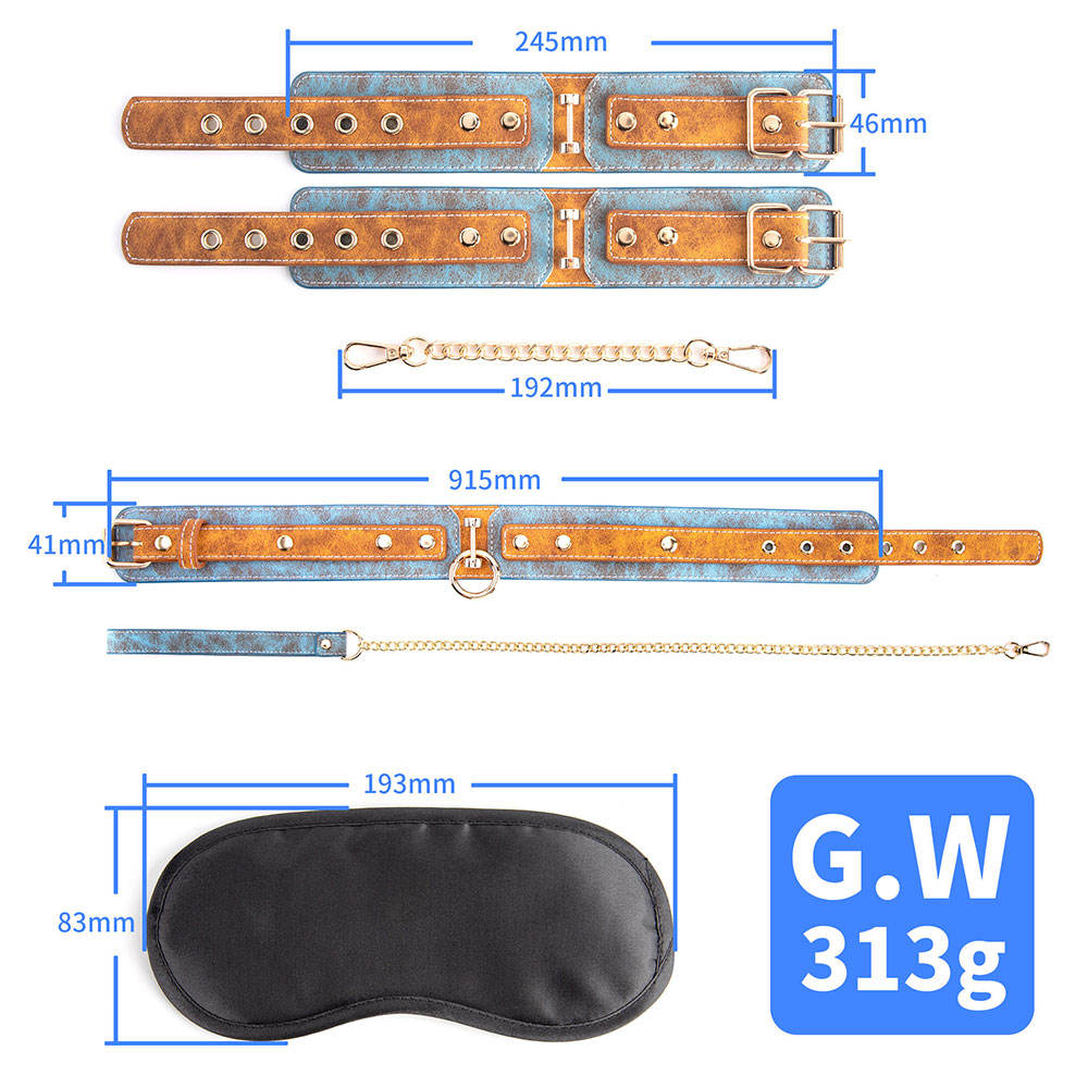 OEM Hot 3Pcs/set Sex Toys for Woman PU Leather SM Sex Bondage Set Hand Cuffs Collar Blindfold Erotic Sex Toy for Couple