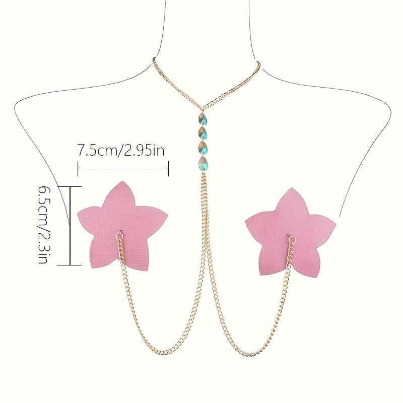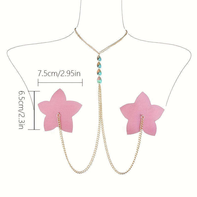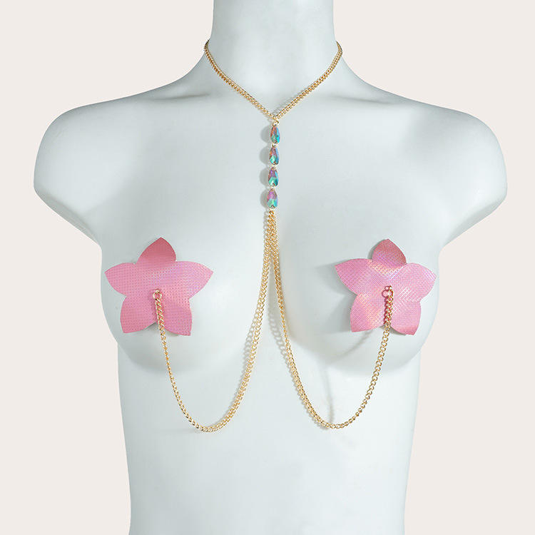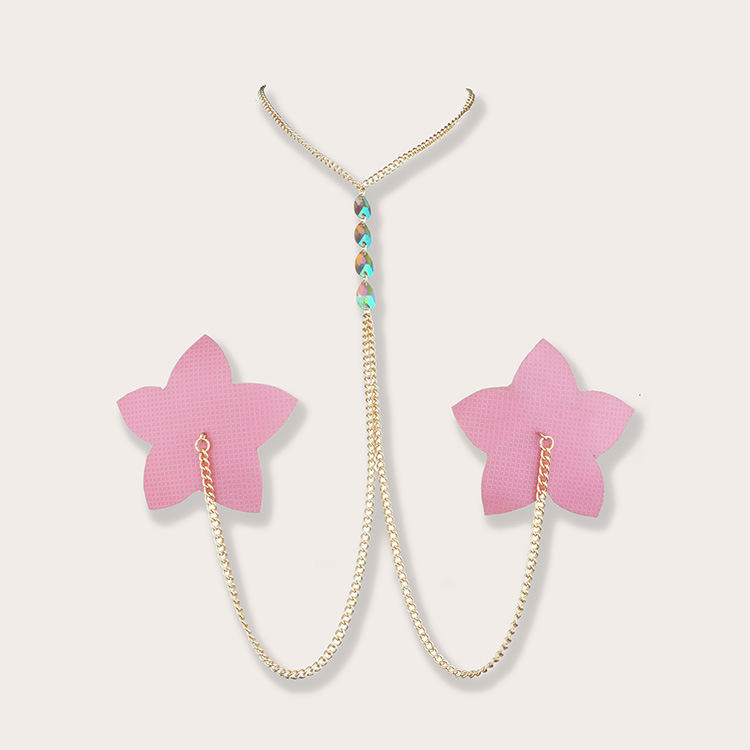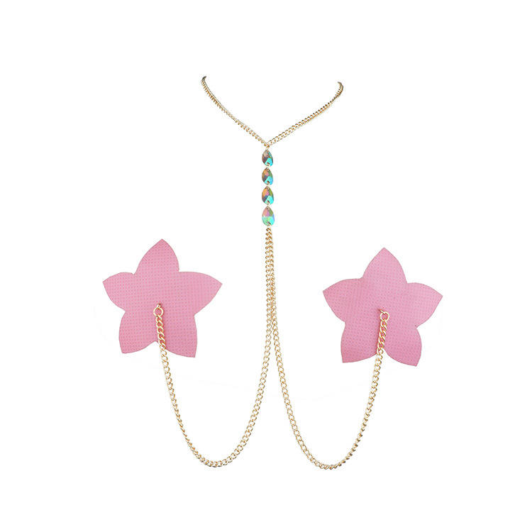 OEM Pink Pu Leather Nipple Cover Sexy Women Nipple Pasties Reusable Self Adhesive Silicone Nipple Stickers Necklace Chain