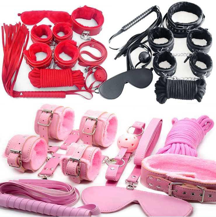 OEM Popular 7 Pcs Set Erotic ToysSex Bondage Leather Strap Kit Slave Game Bdsm Fetish Plush Bondage Sex Toy