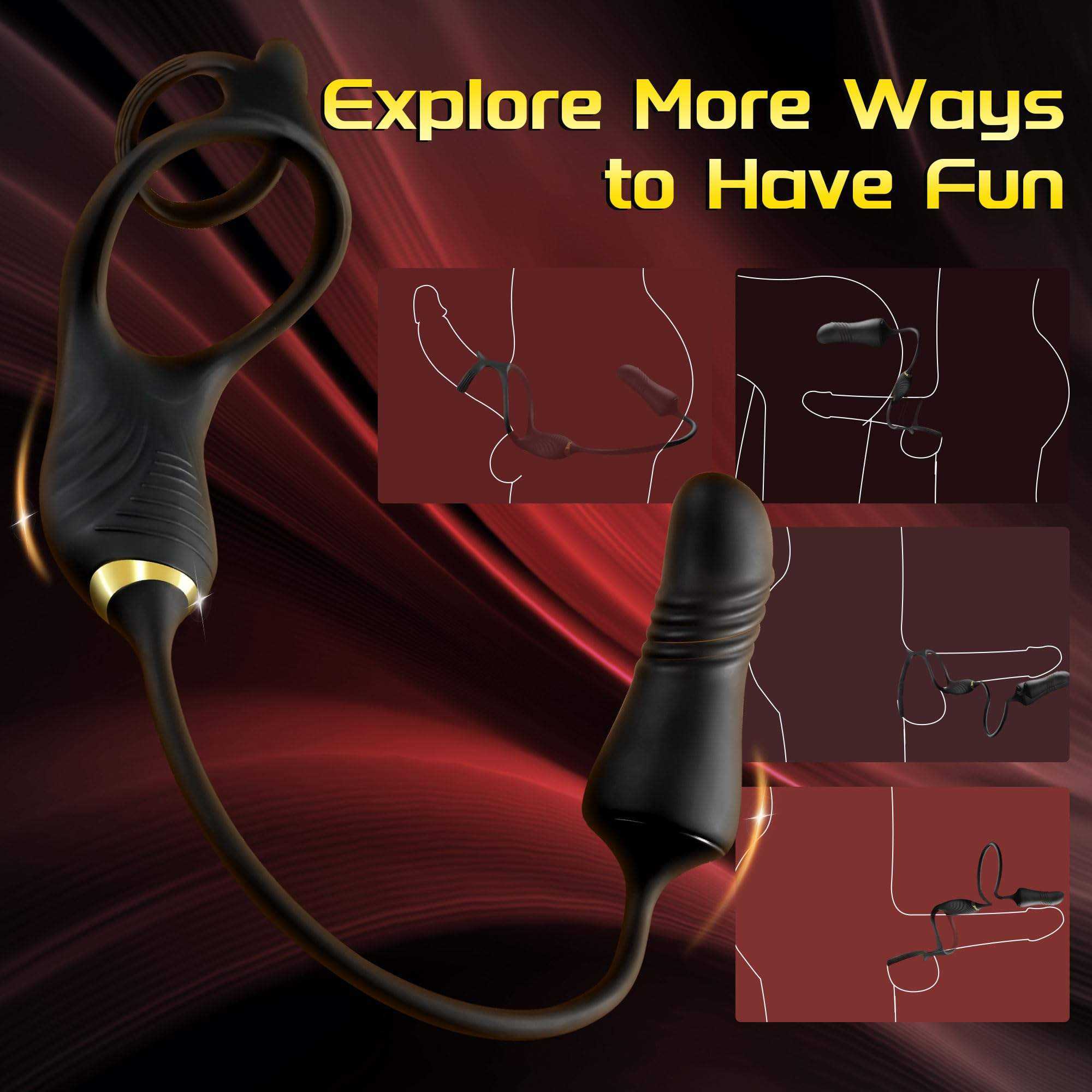 OEM Remote Control P Spot Vibrating Penis Ring Ejaculation Delaying Thrusting Anal Vibrator Cock Ring for Prostate Stimulation