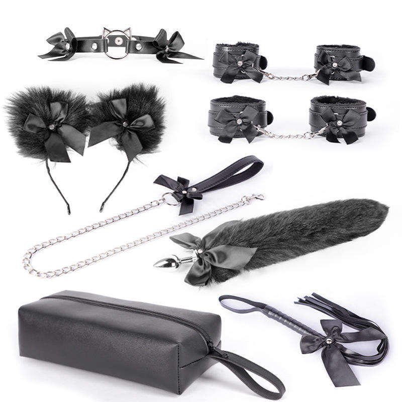 OEM Sexy Leather BDSM Kits Plush Sex Bondage Set Handcuffs Sex Games Whip Gag Nipple Clamps Sex Toy