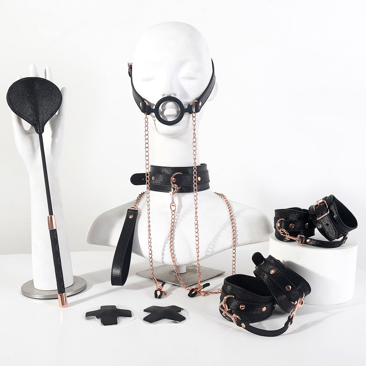 成为第一个“OEM SM 6PCS Kits New Painting Leather Bondage Sets Flirting Sex Toys Including Whips Mask and Handcuffs” 的评价者
