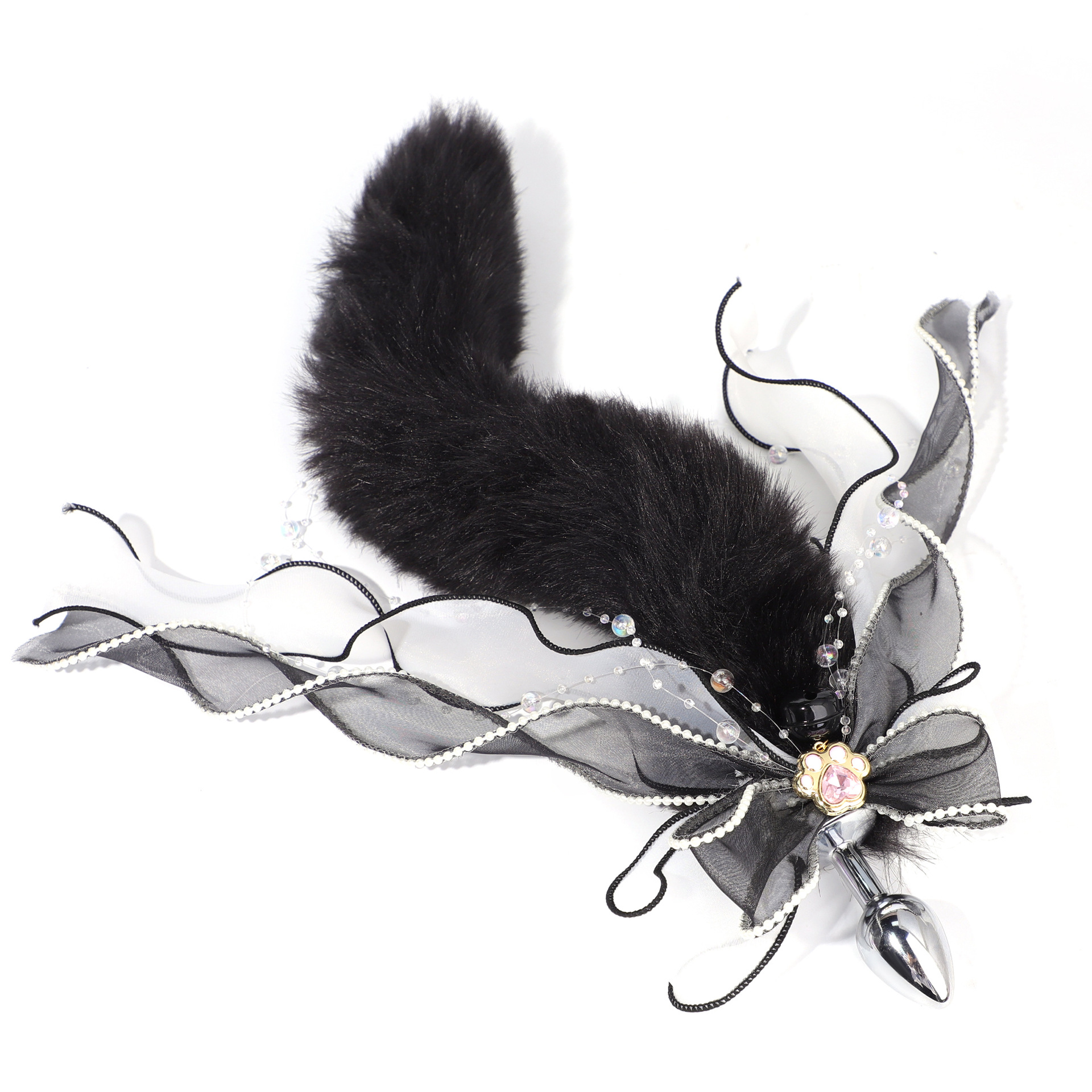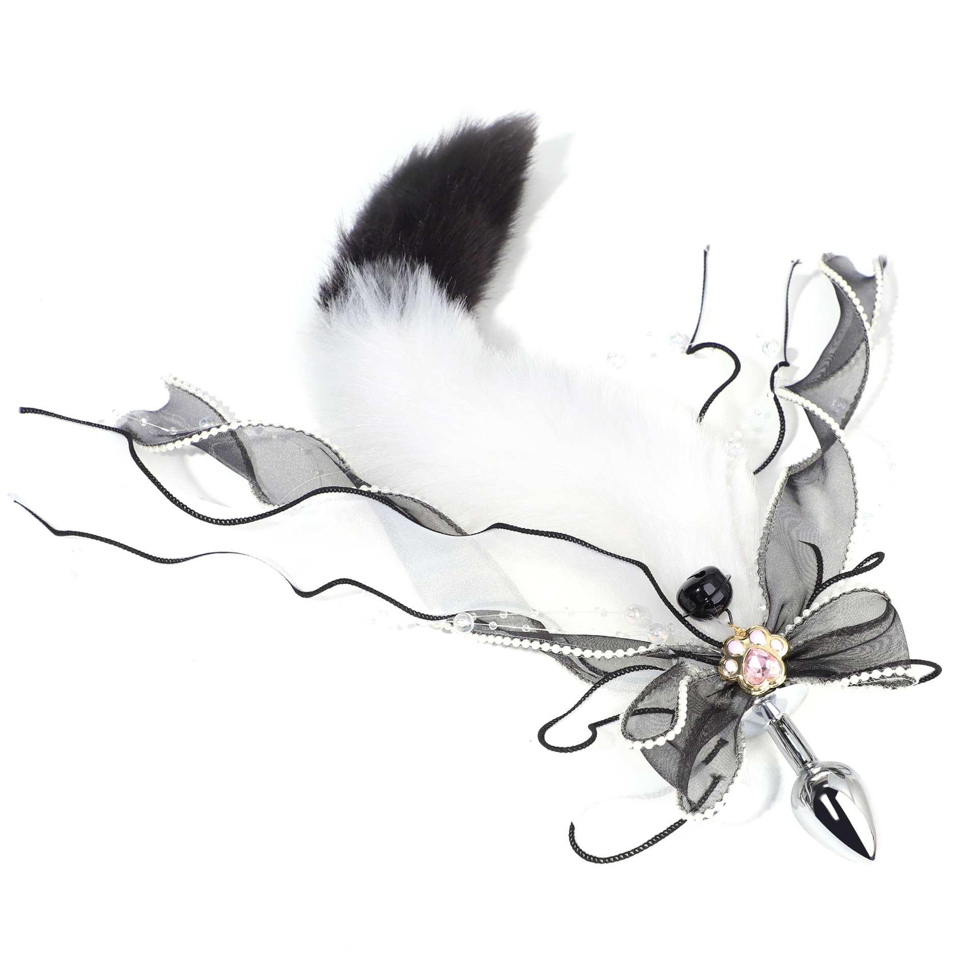 OEM Top Selling Colorful Long Plush Silver fox Tail Anal Plug SM Game Stainless Steel Anal Plug Big