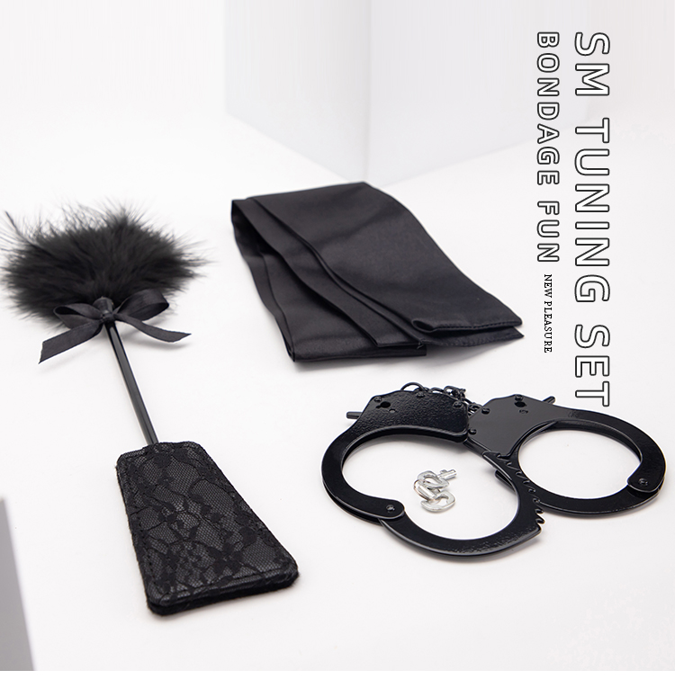 OEM Wholesale Sex Toy BDSM Feather Paddle SM Game Play Blindfold Eyemask Metal Iron Handcuff for Women