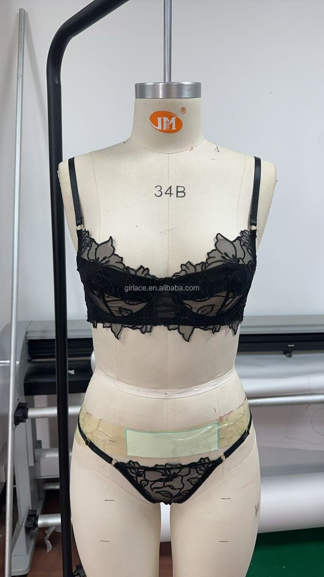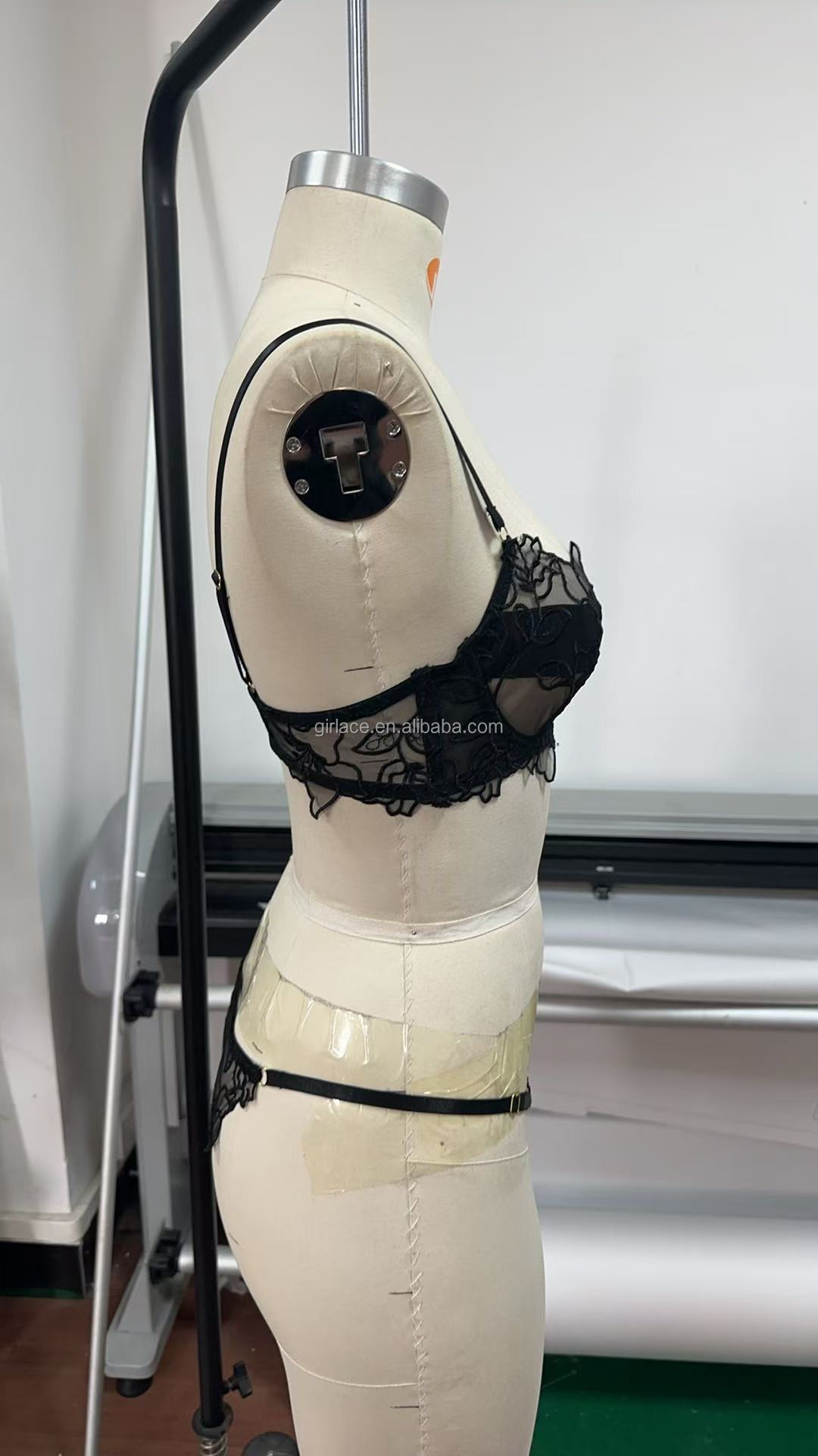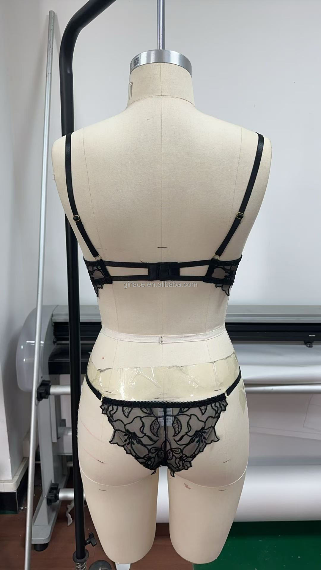 Pure Desire Triangle Style Sexy Lingerie Set Embroidered Lace Mesh Soft Steel Ring Slightly See-Through Jersey Fabric ODM Supply
