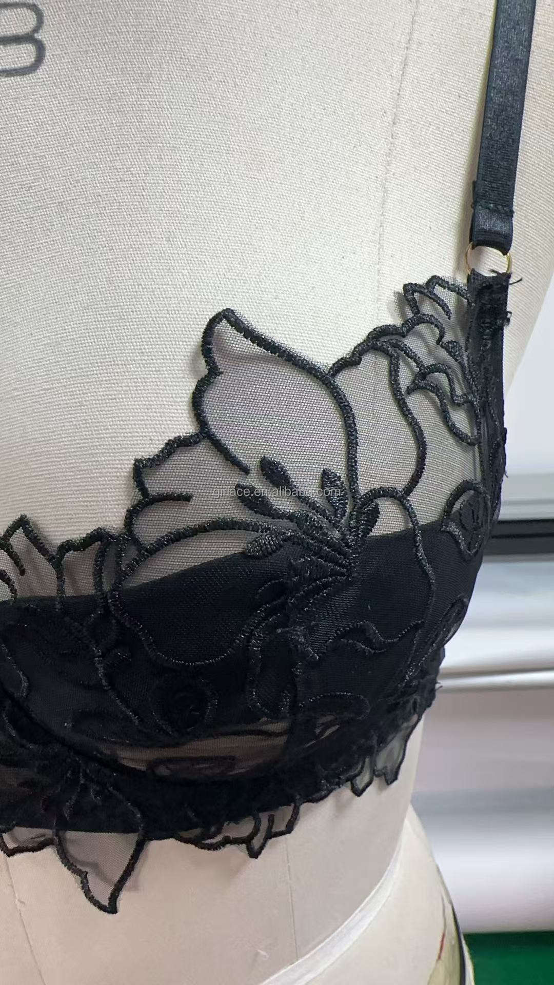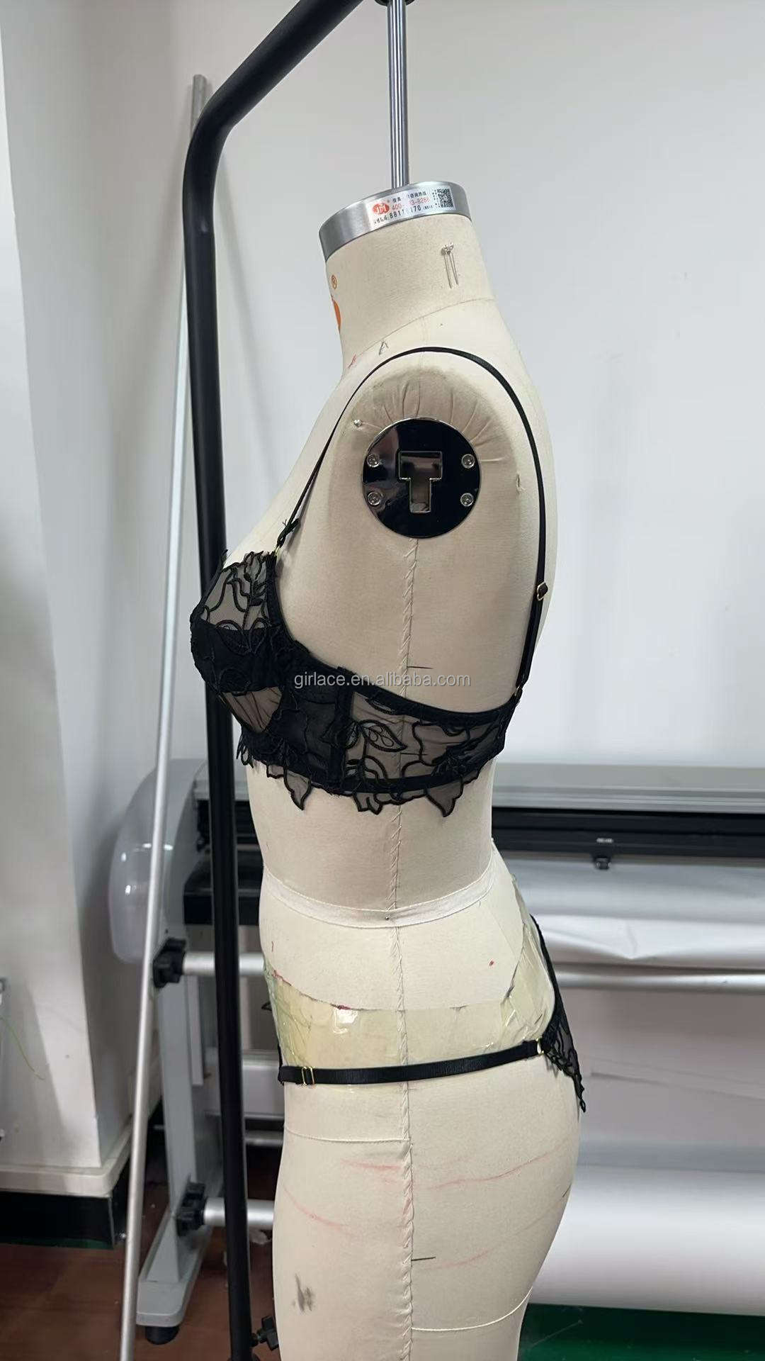 Pure Desire Triangle Style Sexy Lingerie Set Embroidered Lace Mesh Soft Steel Ring Slightly See-Through Jersey Fabric ODM Supply
