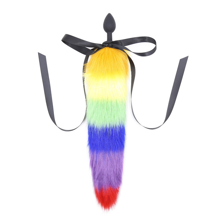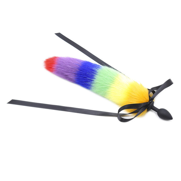 Rainbow Tail – Multi-Colored Bow Tie Anal Plug With Soft Cat Tail Anal Plug