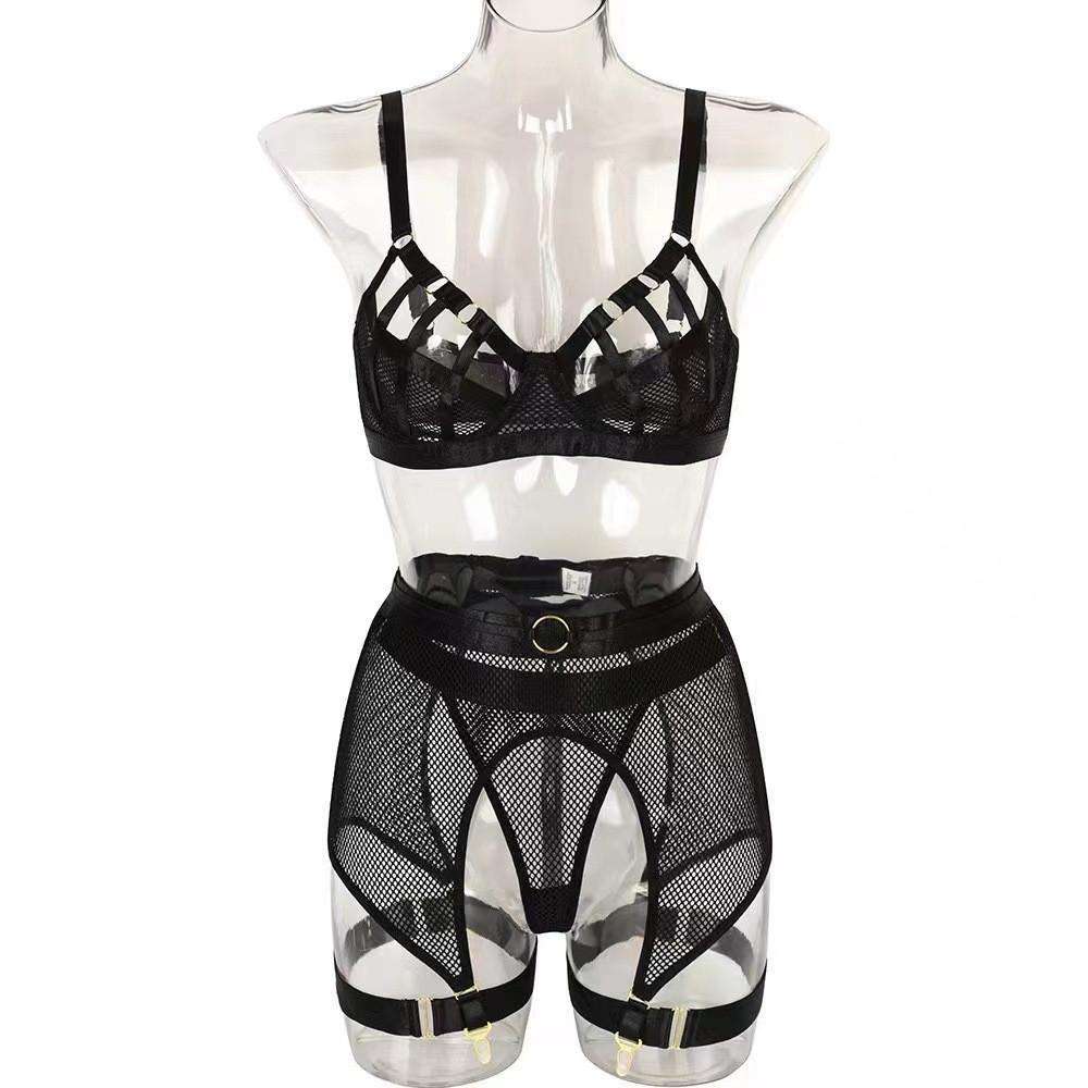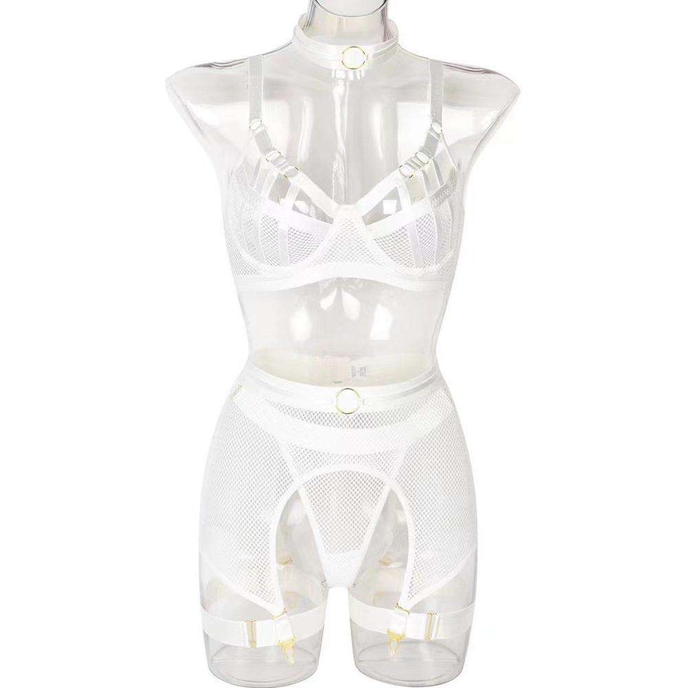 Sexy and Romantic Lingerie Set, Lace See-through Hollowed-out Steel Ring Romantic Lingerie Four-piece Set