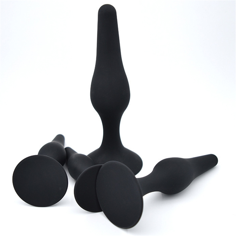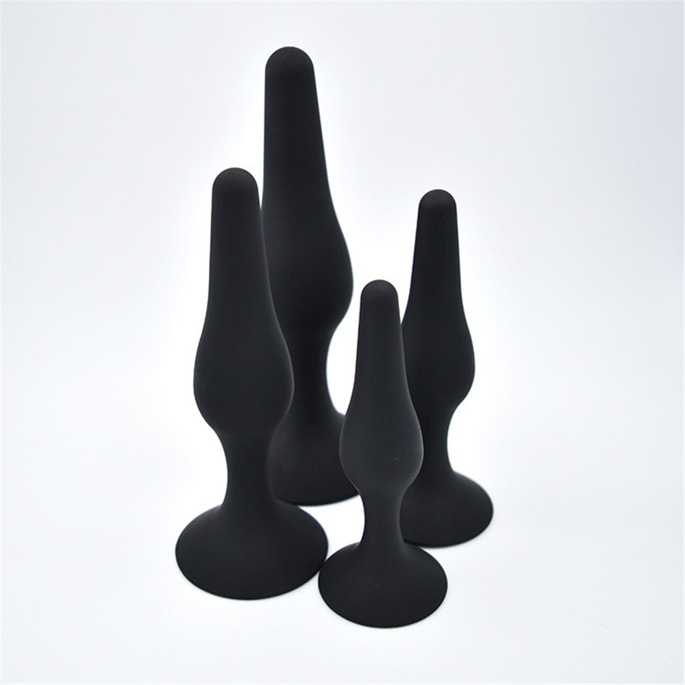 Sexy Toys 4PCS Anal Plug Set Medical Silicone Sensuality Anal Sex Toys (Black)