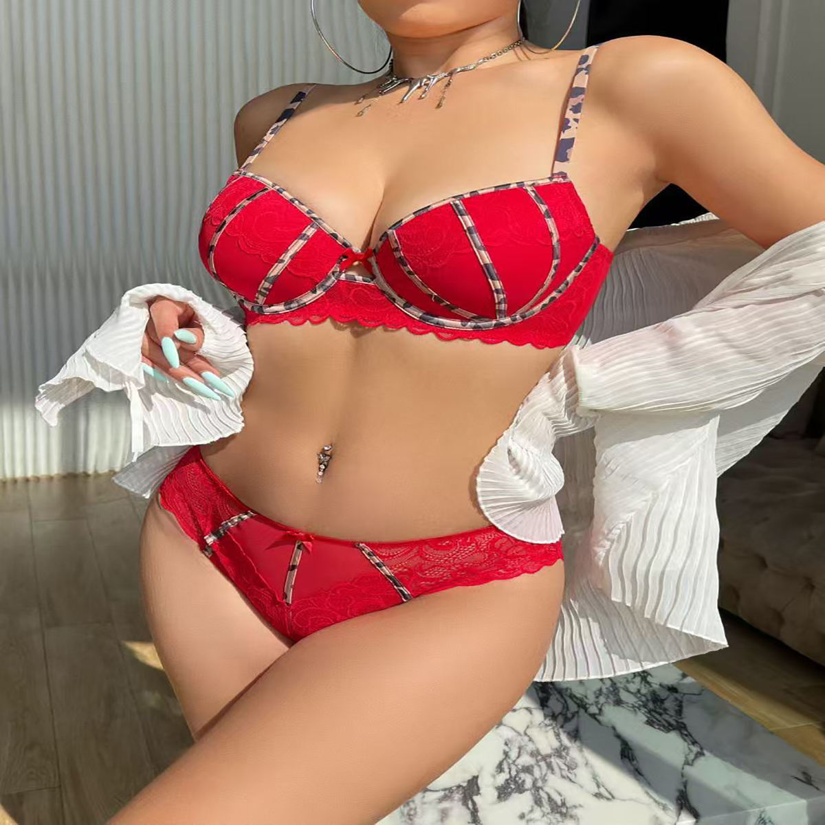 Stylish Sexy Women’s France Bra Panty Set Summer Lace Decorated Erotic Lingerie for Ladies No Minimum Order Required