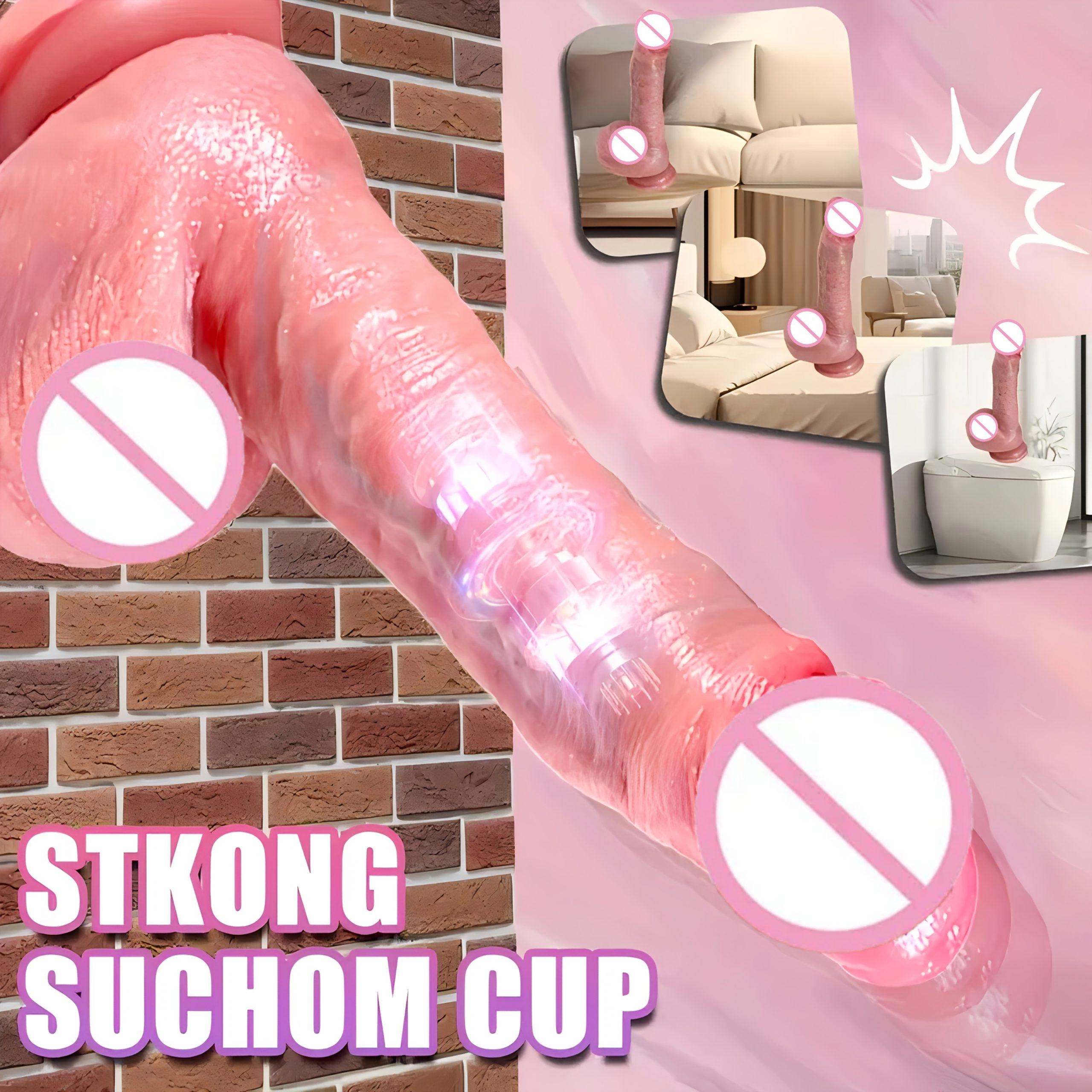 Telescopic Realistic Dildo With Suction Cup Heating Wireless Remote Dick for Women Masturbator