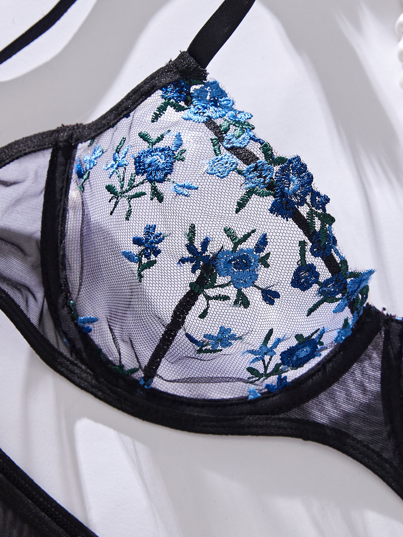 Valentine’s Floral Charming Sexy Fancy Jersey Nighty for Ladies Women’s Underwear Lace Embroidery Hollow Decoration Panty Set