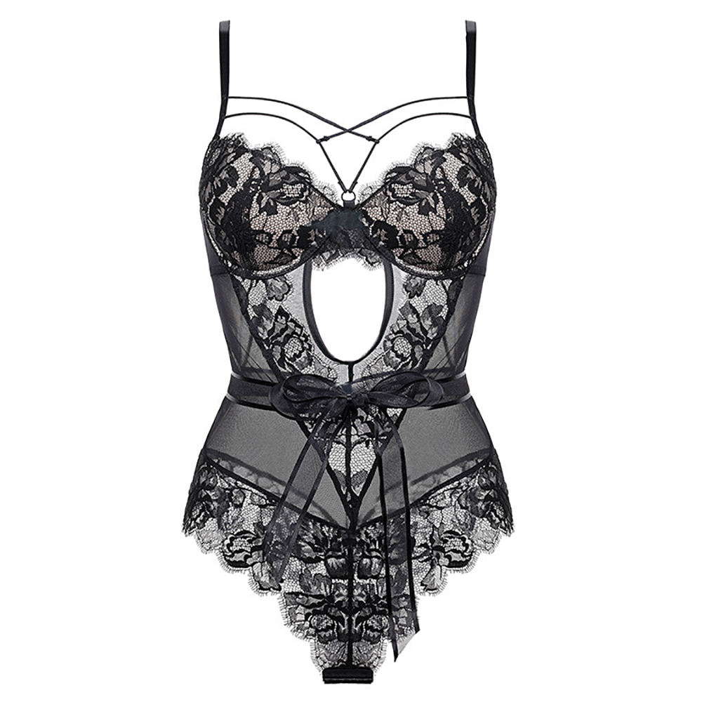 Wholesale Custom Women’s Sexy One-Piece Jumpsuits Transparent Lace Hollowed-Out Jersey Fabric Lingerie