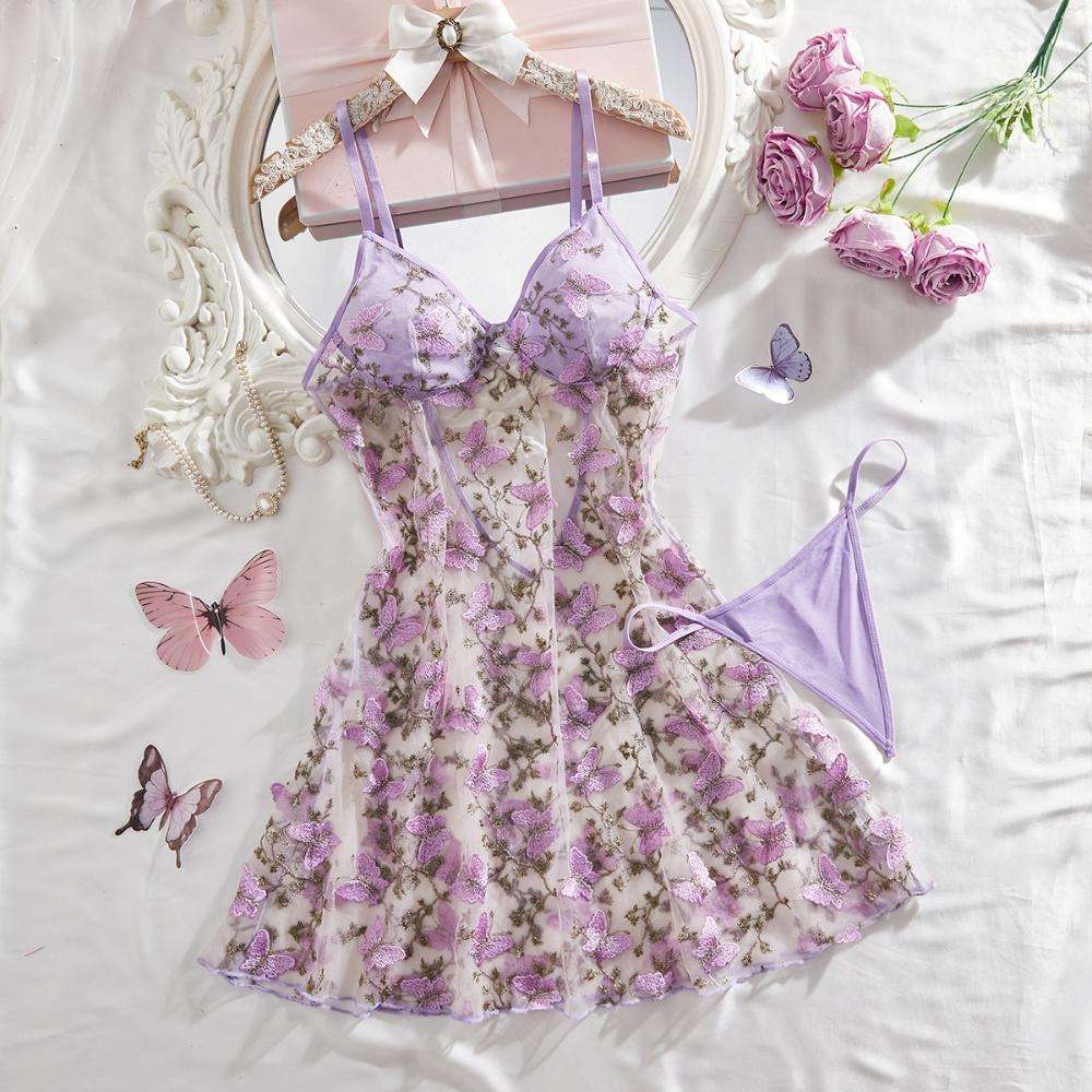 Wholesale of Sexy, Pure and Romantic Lingerie, Mesh Embroidered Dress with Hollowed-out Halter Straps