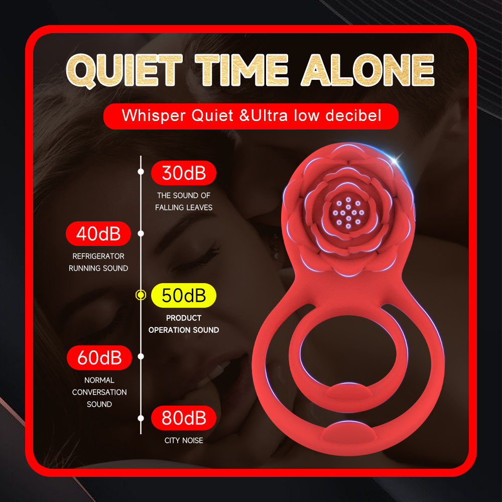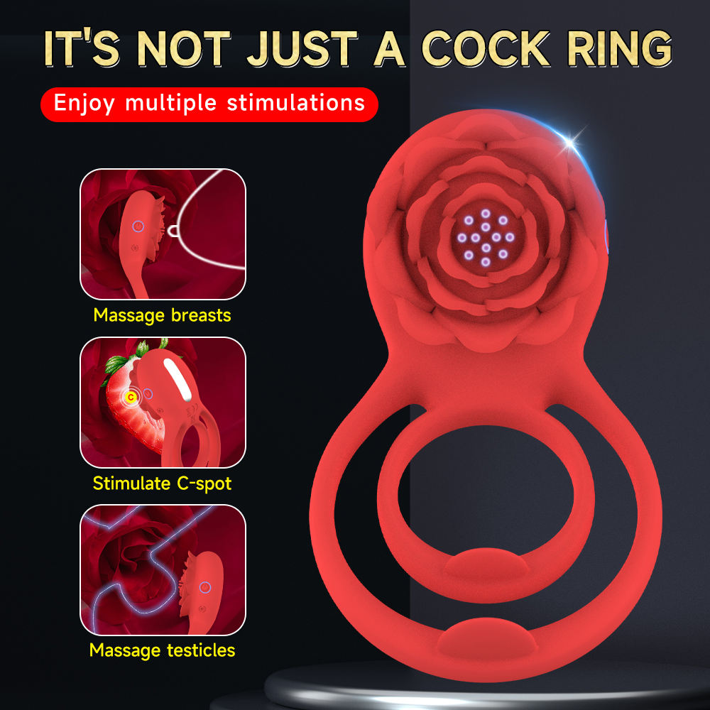 Wholesale Rose Cock Ring Clitoral Stimulator Vibrating Couple Silicone Ring Man Penis Rings for Men Ejaculation Delay Red 80g