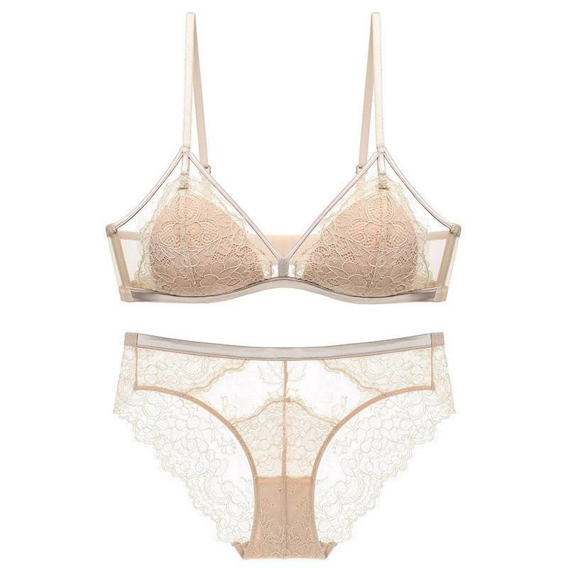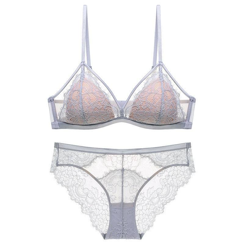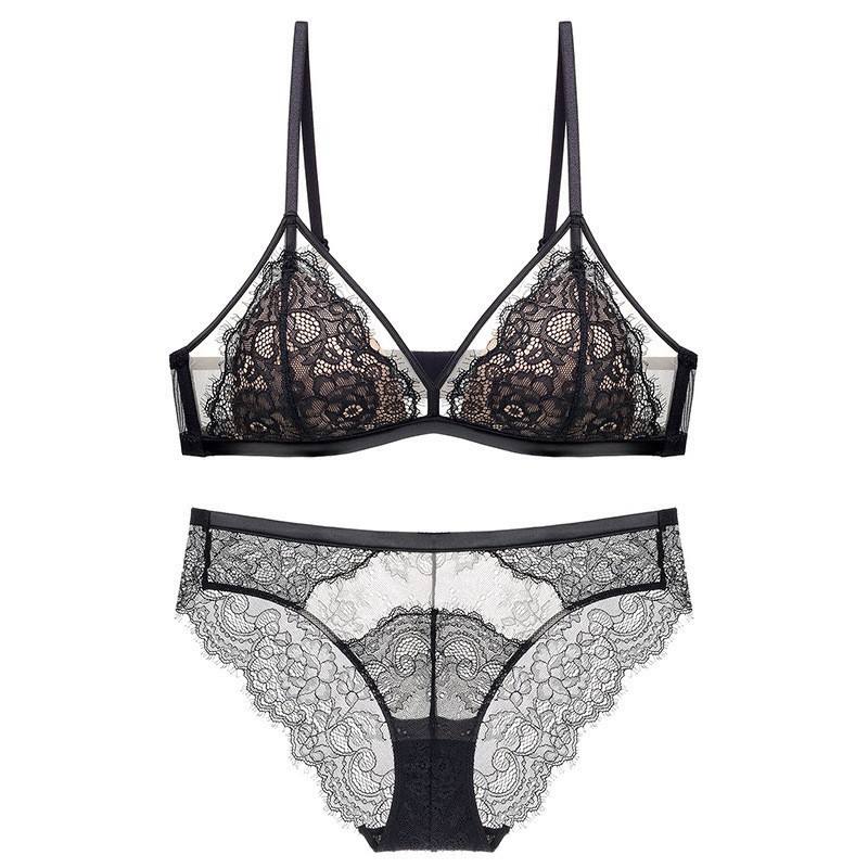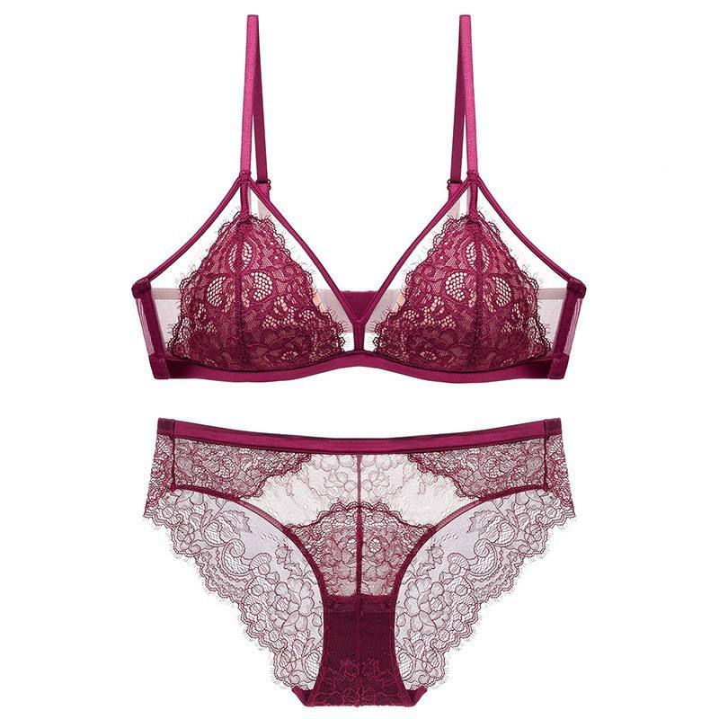 Wholesale Ultra-Thin Sexy Madam French Bra Lingerie Set for Women Hollow See-Through Mesh Bra Underwear with Lace Decoration
