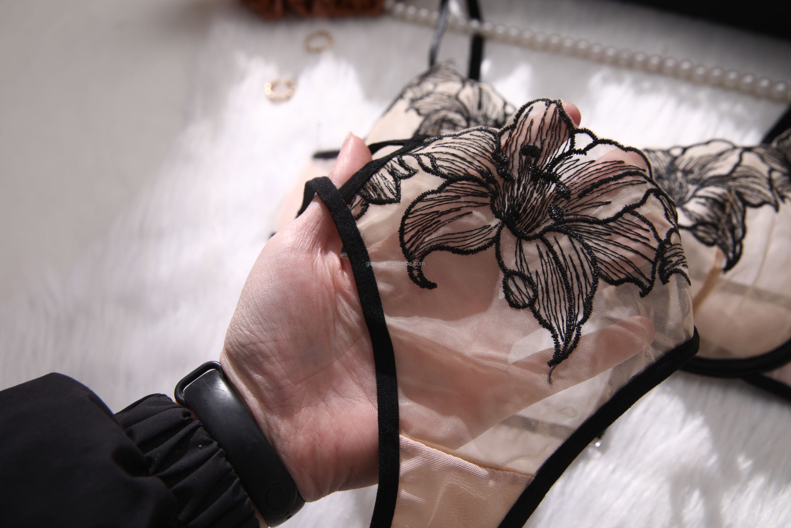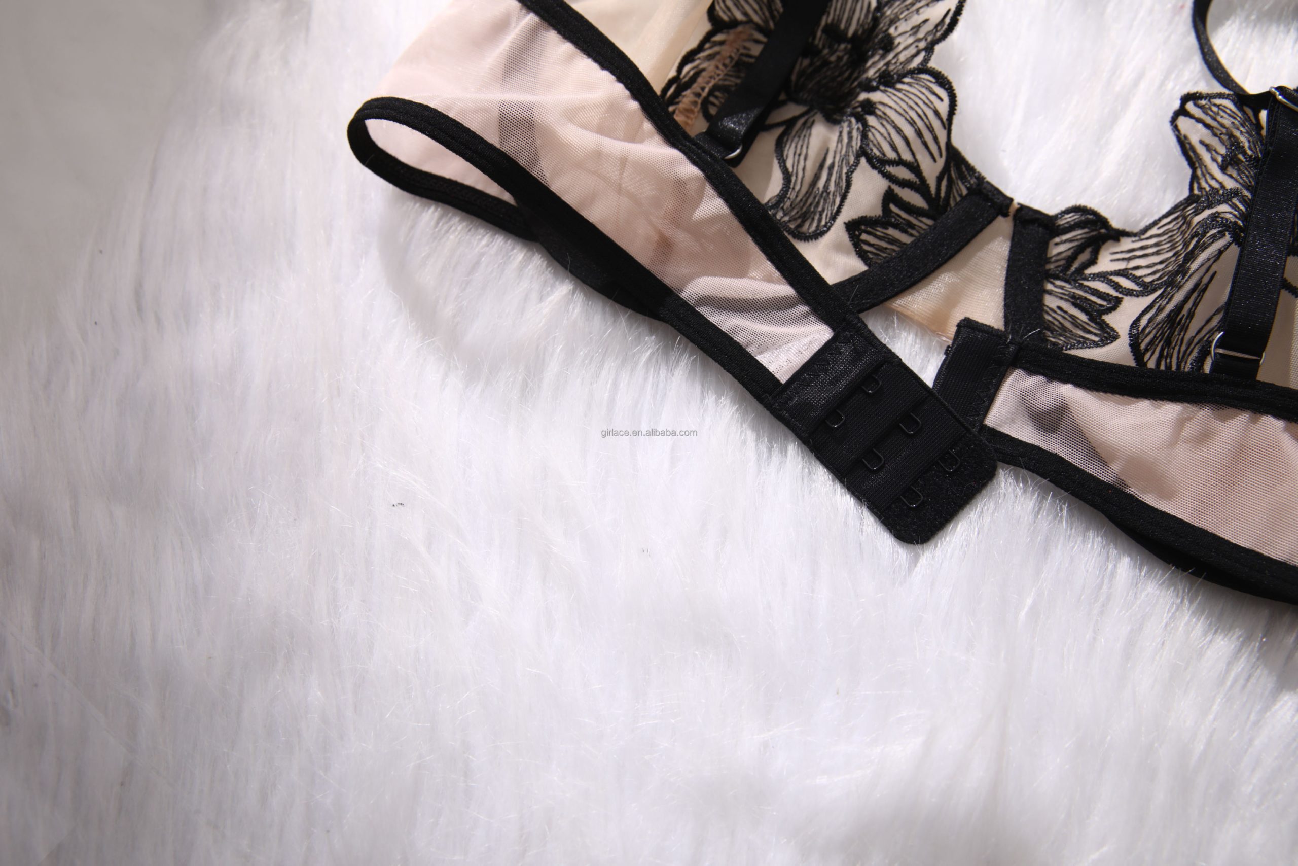 Wholesale Young Lady Fancy Push up Embroidered See Through Bra Top Sexy Bandage Erotica Bra Panty Set