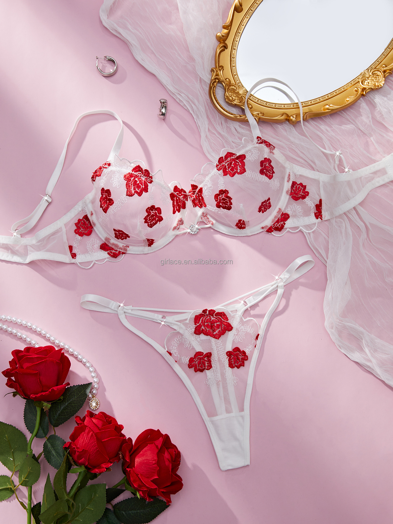 Wholesale Young Lady Fancy Push up Embroidered See Through Bra Top Sexy Bandage Erotica Bra Panty Set