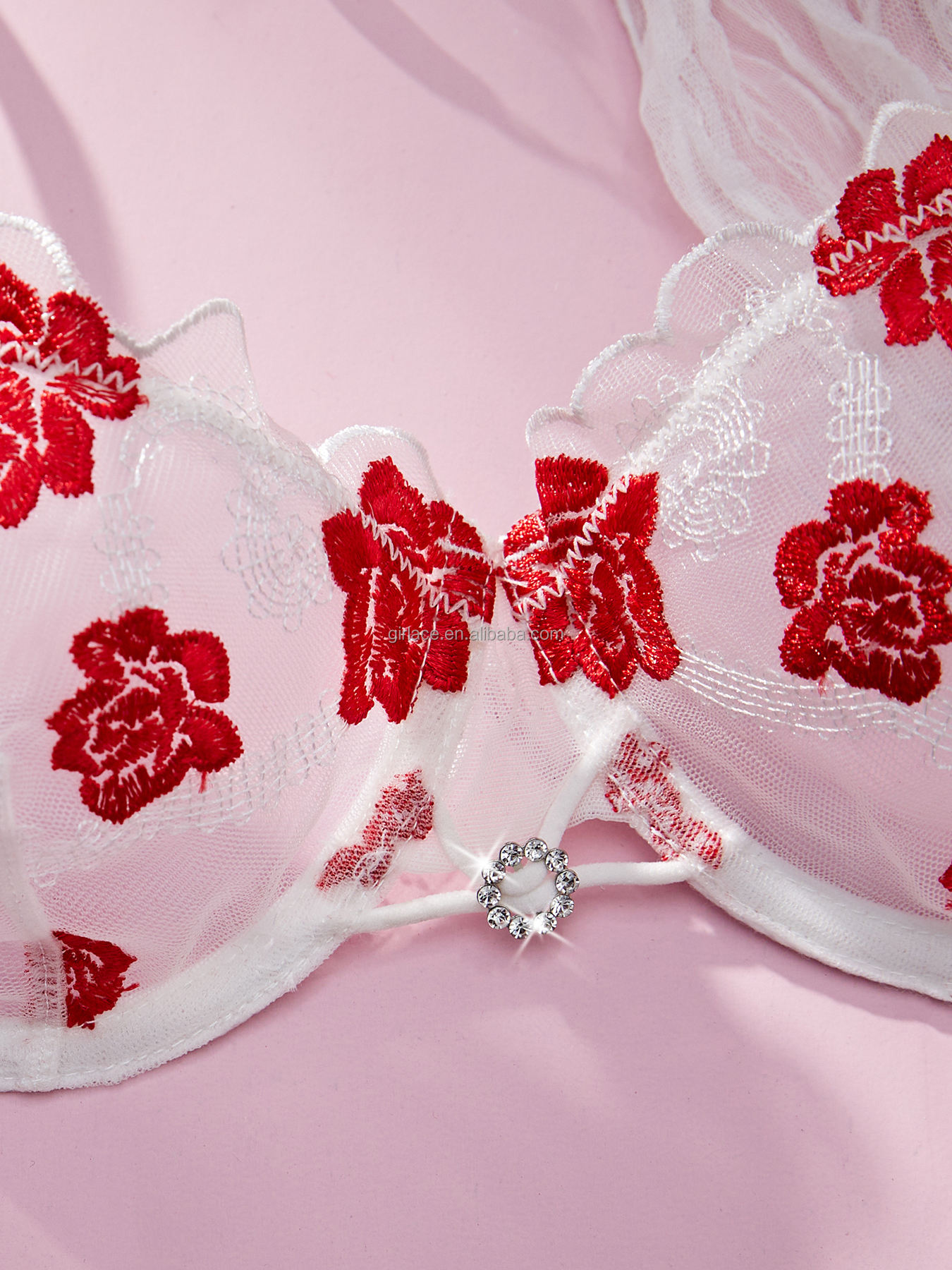 Wholesale Young Lady Fancy Push up Embroidered See Through Bra Top Sexy Bandage Erotica Bra Panty Set