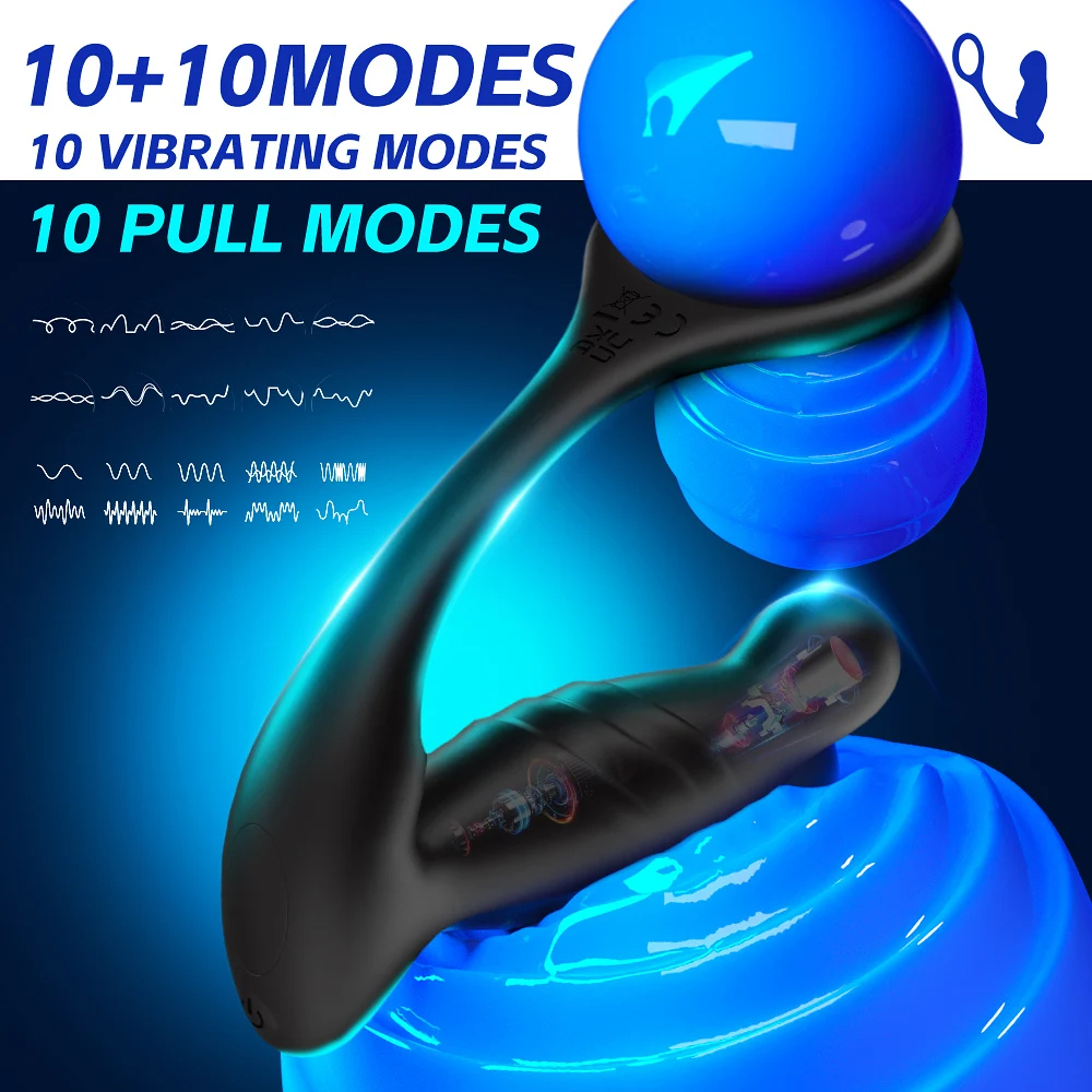 Wireless Remote Control Finger-Motion Wiggling Butt Plug Anal Vibrator Fingering Male Prostate Massager with Penis Cock Rings