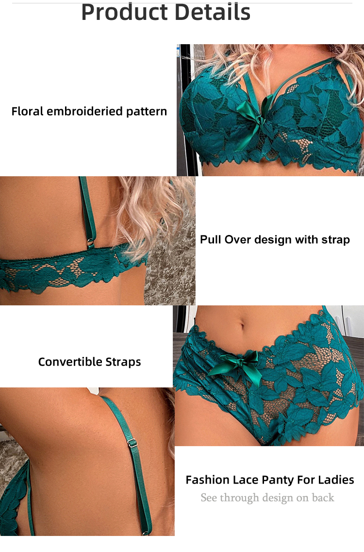 Women Back Closure Lingerie Lace Push up Wire Free Bra Panty Set Retro Floral Lace Babydoll Lingerie With Many Colors