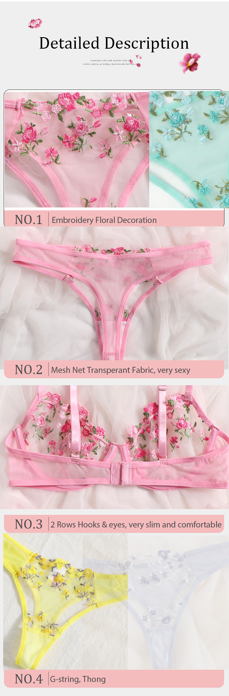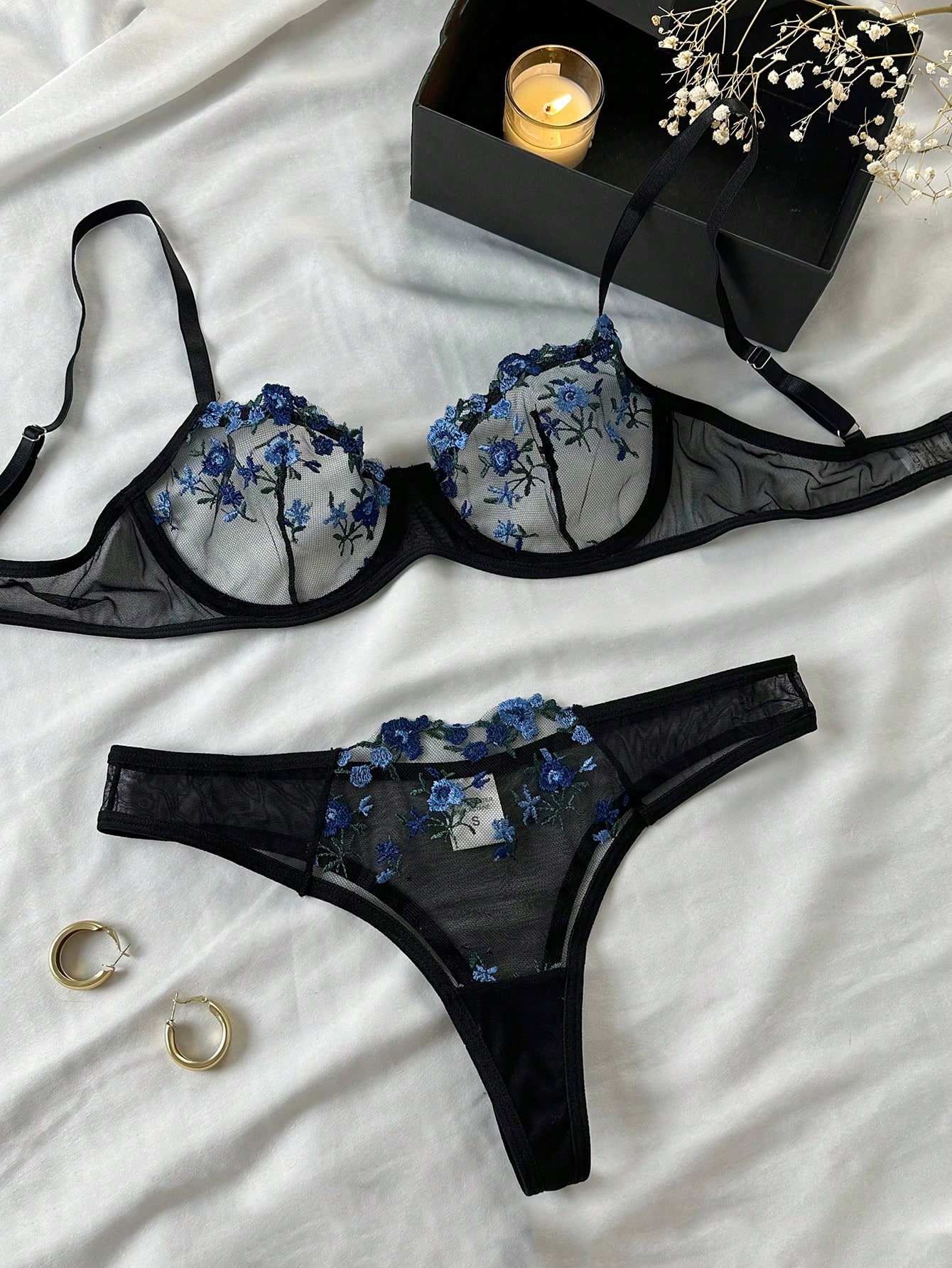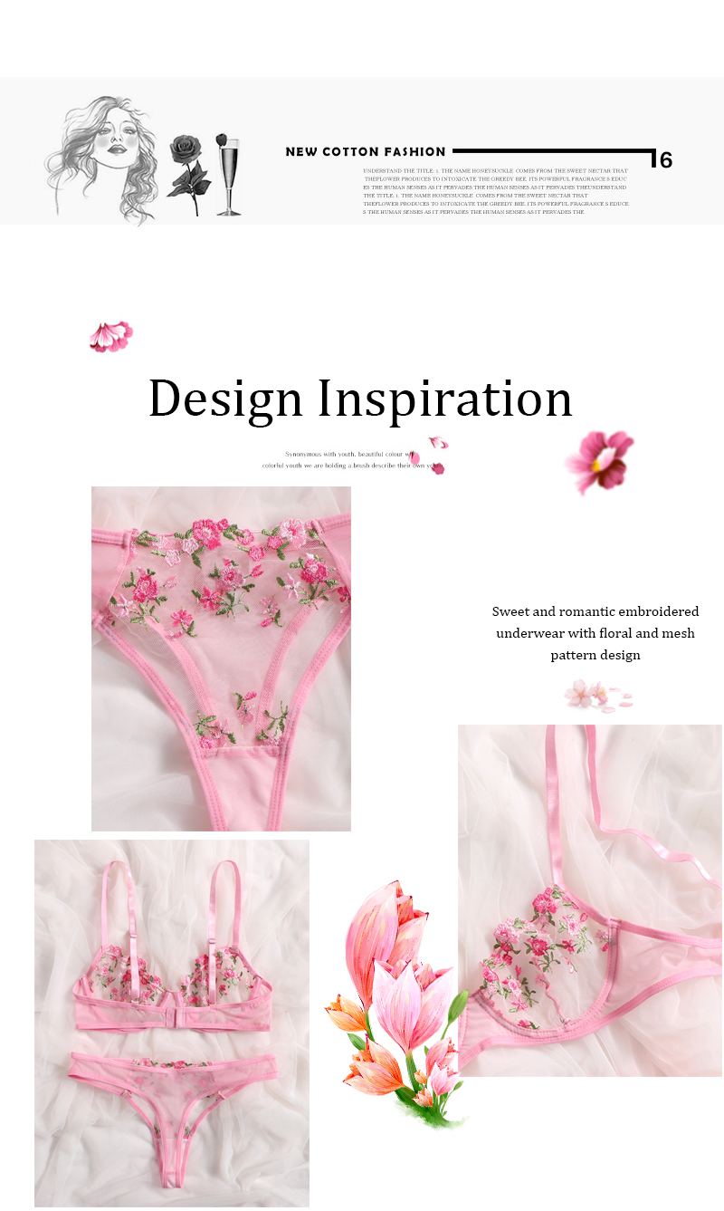 Women Fancy Floral Sexy Underwear Night Club Wear for Honeymoon Lingerie Set