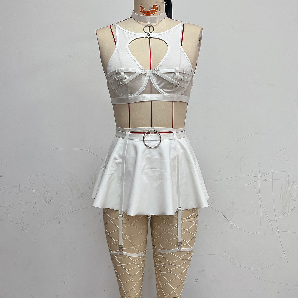 Women Sexy Leather Sexy Apron Lingerie Hot Beads Lace Lingerie Set Floral Bra and Panty Sets Sexy Underwear Panty Bra