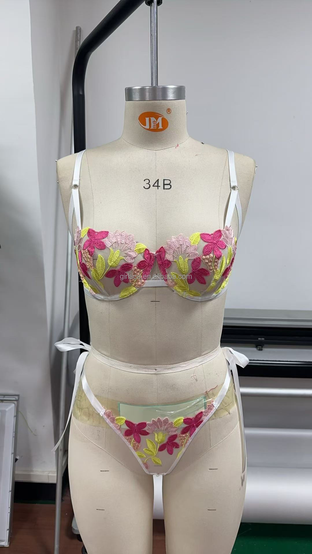Women’s Cute Floral Embroidered Lace Lingerie Set Sexy White Underwire Jersey Fabric Comfortable Breathable Summer Underwear
